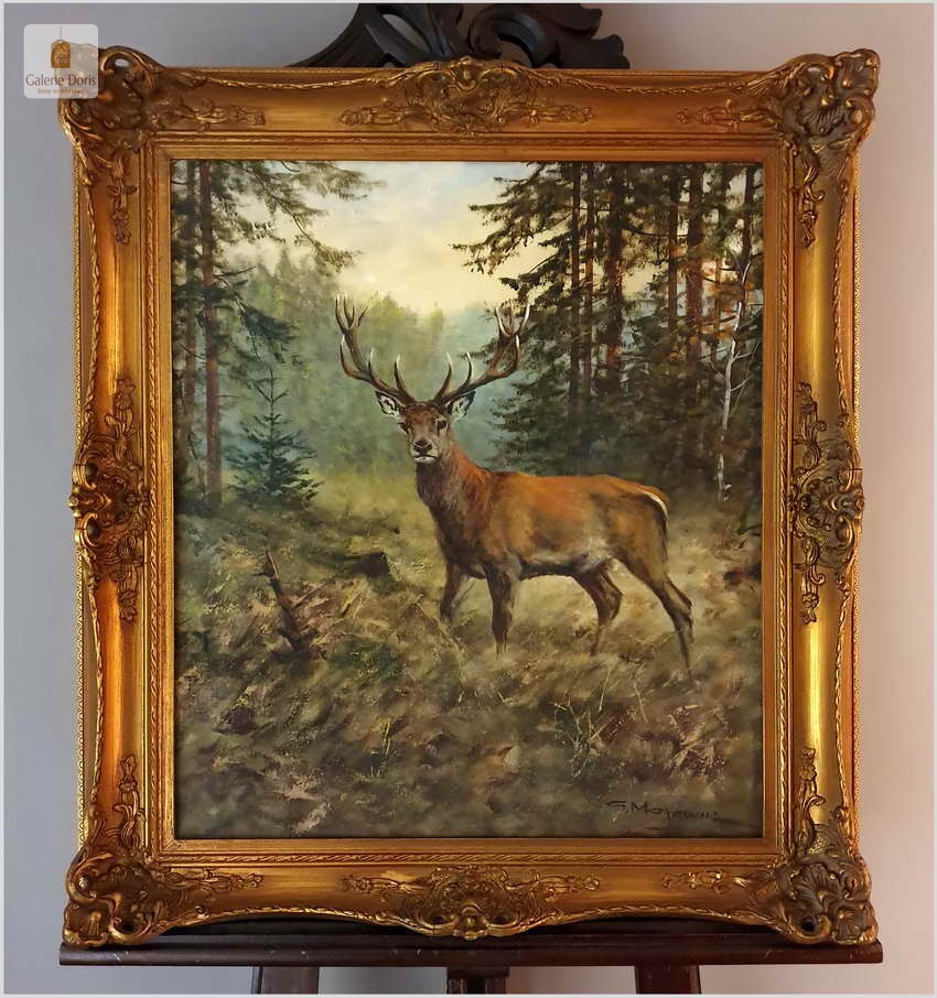 Malarstwo myśliwskie! Dostojny czternastak. Jeleń - oryg. Georg Majewicz (1897-1965)