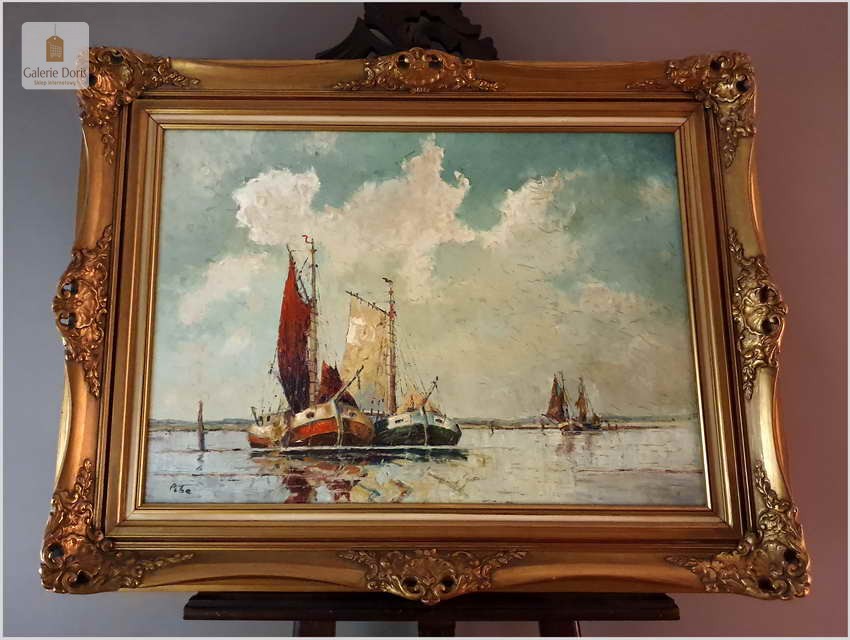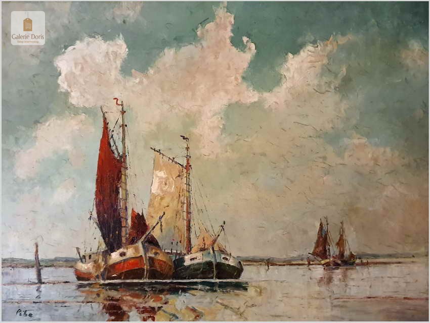 Rudolf PRIEBE (Kiew 1889-1964 Hamburg, Marinemaler) - Marine Fischerboot an der Nordsee Ölgemälde artprice / Rudolf Priebe (Szulakowo w dawnej guberni kijowskiej 1889 – Rudolfstadt 1964) – niemiecki marynista i portrecista – studia malarskie rozpoczął w Szkole Sztuki we Wrocławiu u profesorów Arnolda Buscha i Eduarda Kaempffera. Następnie kształcił się w Akademii Sztuk Pięknych w Monachium u Ludwiga Hertericha. Mieszkał i tworzył w Hamburgu.