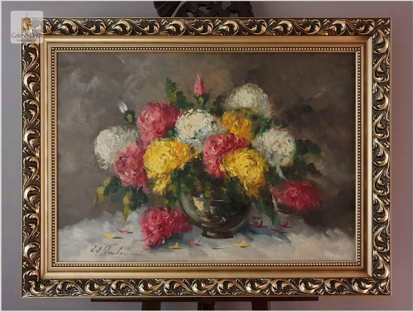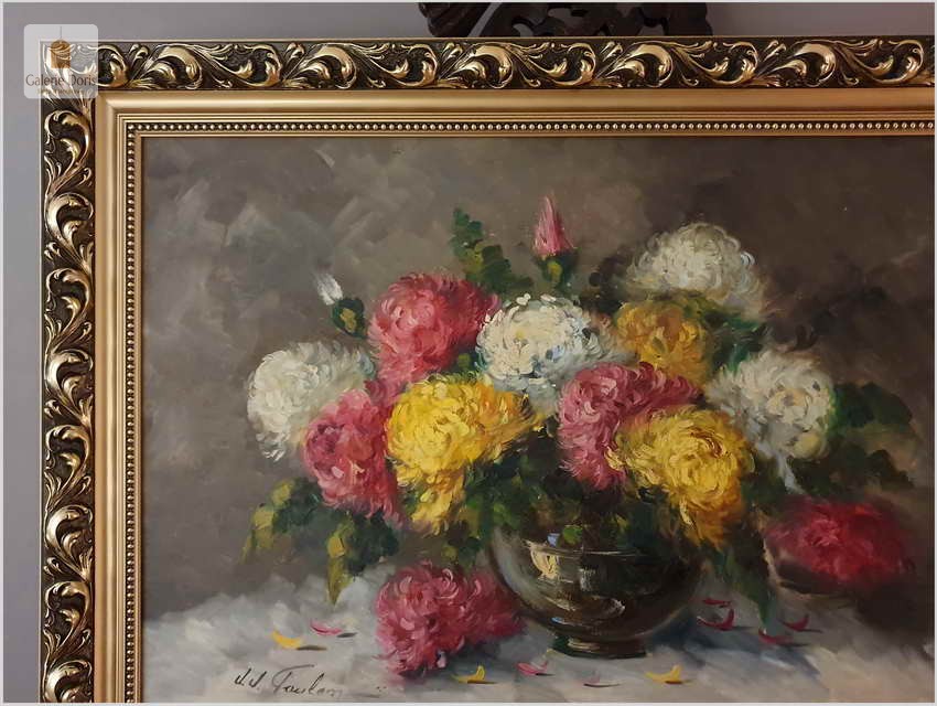 W malarstwie artysty splatały się różne style, stałą zaś cechą twórczości J.J-Foulona było inspirowanie się naturą, której głęboka znajomość leżała u podstaw każdego z namalowanych przez artystę dzieł. Jest to z pewnością wspaniała lokata kapitału. Będzie z pewnością pięknym widokiem na naturę w Państwa kolekcji, domu.