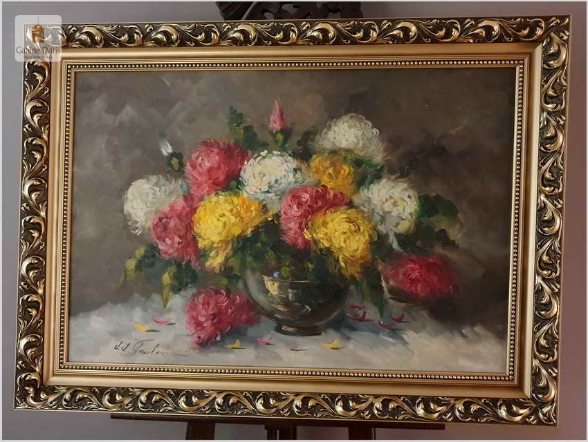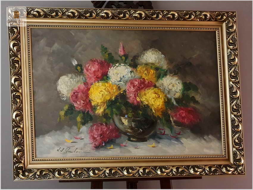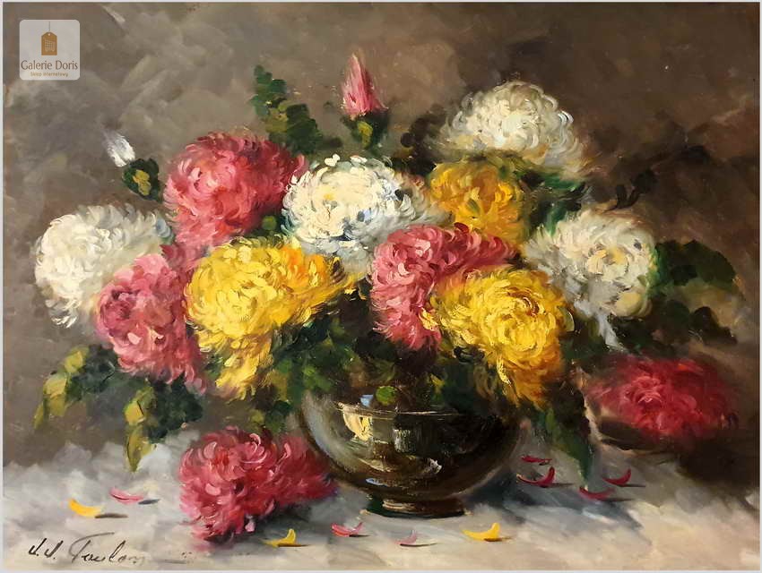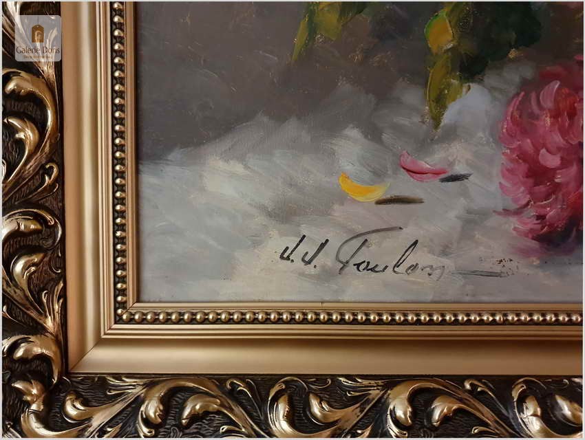 J.J.Foulon, Belgia (1923-1980). Jean-Jacques Foulon urodził się w 1923 roku w Kraainem. Malował pejzaże i kompozycje z kwiatów. Student Alfreda Delaunois z Akademii Leuven. Wystawiał w Belgii, ale także w Kanadzie i Stanach Zjednoczonych. Prace J.J.Foulon są w wielu prestiżowych kolekcjach sztuki współczesnej. Obrazy tego malarza można oglądać także w muzeum l'Académie de Beaux-Arts de Louvain. Malarz notowany w ArtPrice.