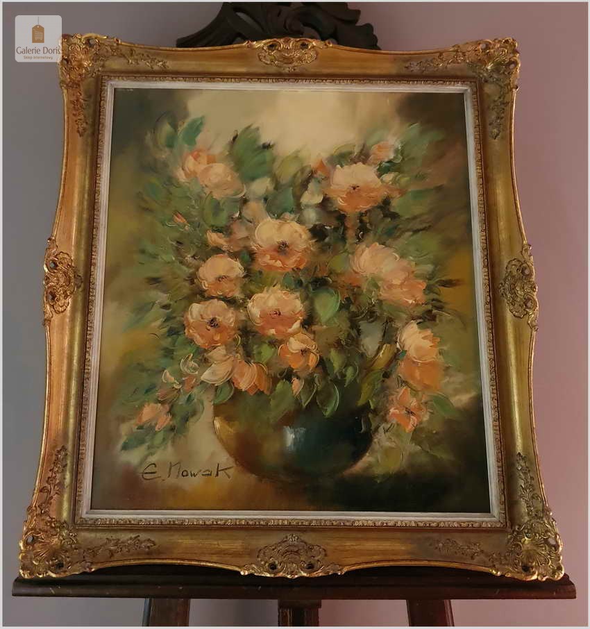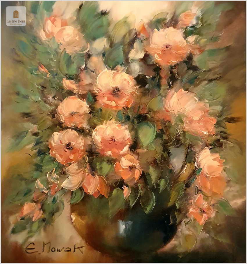 Obraz olejny do salonu. Kompozycja kwiatowa - Eduard Nowak *1921