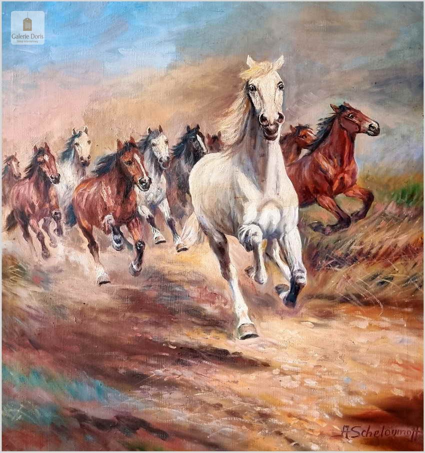 Galopujące dzikie konie - Afanasij Ivanovic Scheloumoff (1892-1983)