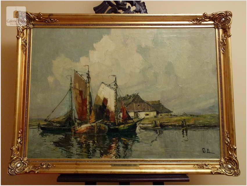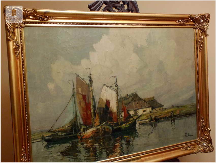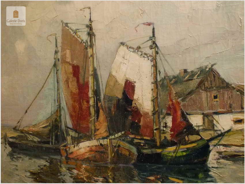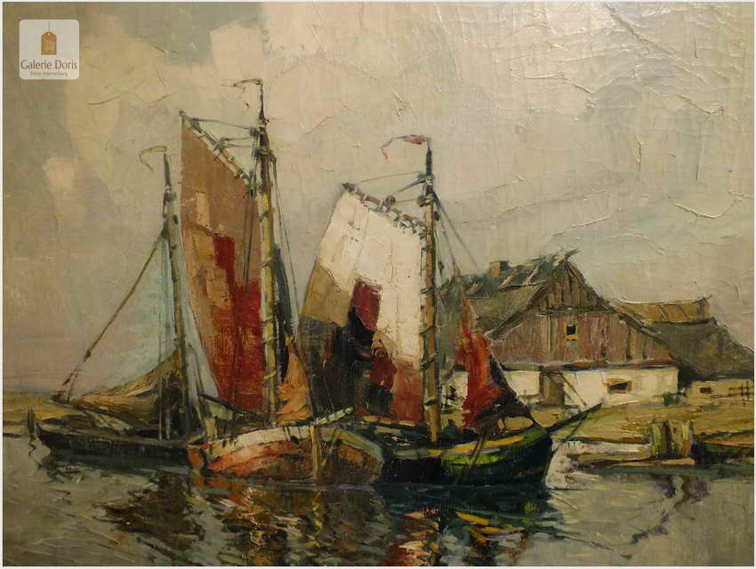 ŁODZIE PRZY BRZEGU - Rudolf PRIEBE (Kiew 1889-1964 Hamburg)