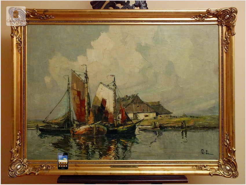 AUKCYJNE MALARSTWO MARYNISTYCZNE! ŁODZIE PRZY BRZEGU - Rudolf PRIEBE (Kiew 1889-1964 Hamburg)
