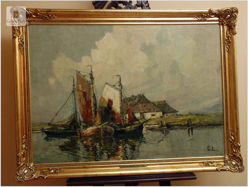 Rudolf PRIEBE (Kiew 1889-1964 Hamburg, Marinemaler) - Marine Fischerboot an der Nordsee Ölgemälde artprice / Rudolf Priebe (Szulakowo w dawnej guberni kijowskiej 1889 – Rudolfstadt 1964) – niemiecki marynista i portrecista – studia malarskie rozpoczął w Szkole Sztuki we Wrocławiu u profesorów Arnolda Buscha i Eduarda Kaempffera. Następnie kształcił się w Akademii Sztuk Pięknych w Monachium u Ludwiga Hertericha. Mieszkał i tworzył w Hamburgu.