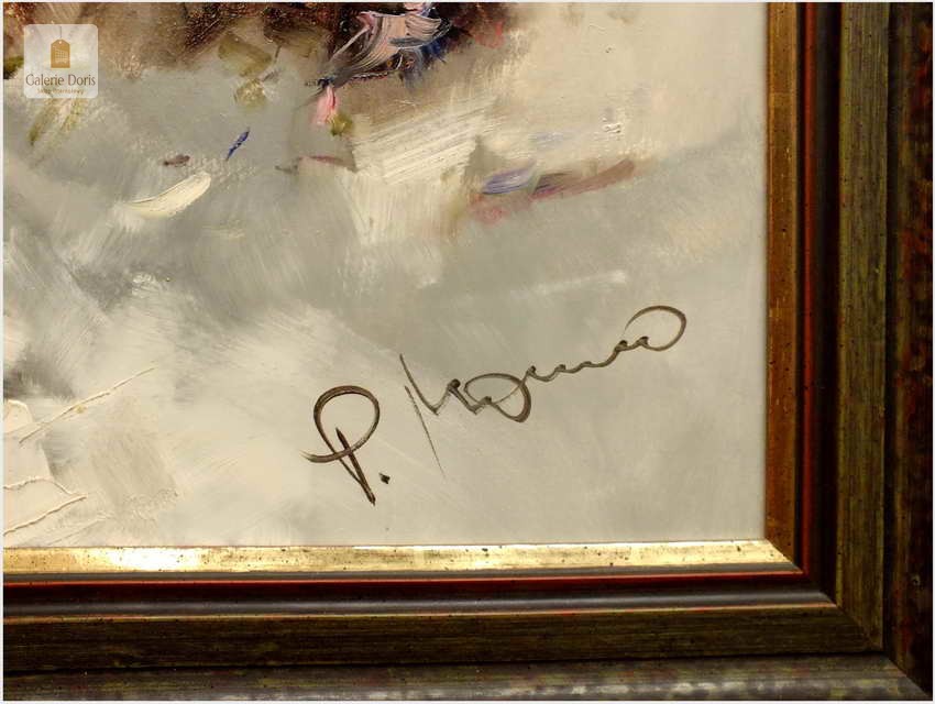 Ingfried Henze-Morro proponuje nowy sposób interpretacji kultury impresjonisty co sprawia, o dużej wolności w wyobraźni twórczej. Prawdziwi eksplozje chromatyczne, urzeczony często w świeże i zaskakujące kompozycje w charakterystyczne dla Jego stylu kolory mięty, czerwieni burgunda, niebieskiego z fioletem włącznie. Jego bezpieczne i bardzo szybkie pociągnięcia pędzla są zawsze zrównoważone. Rezultatem jest wyrafinowany Neuimpressionismus, Morro opanował go perfekcyjnie. Na koniec należy dodać, że Morro jest jednym z najważniejszych przedstawicieli współczesnego impresjonizmu. Obraz idealne prezentuje się w starych i nowoczesnych wnętrzach. Płótno bez uszkodzeń - Polecamy!