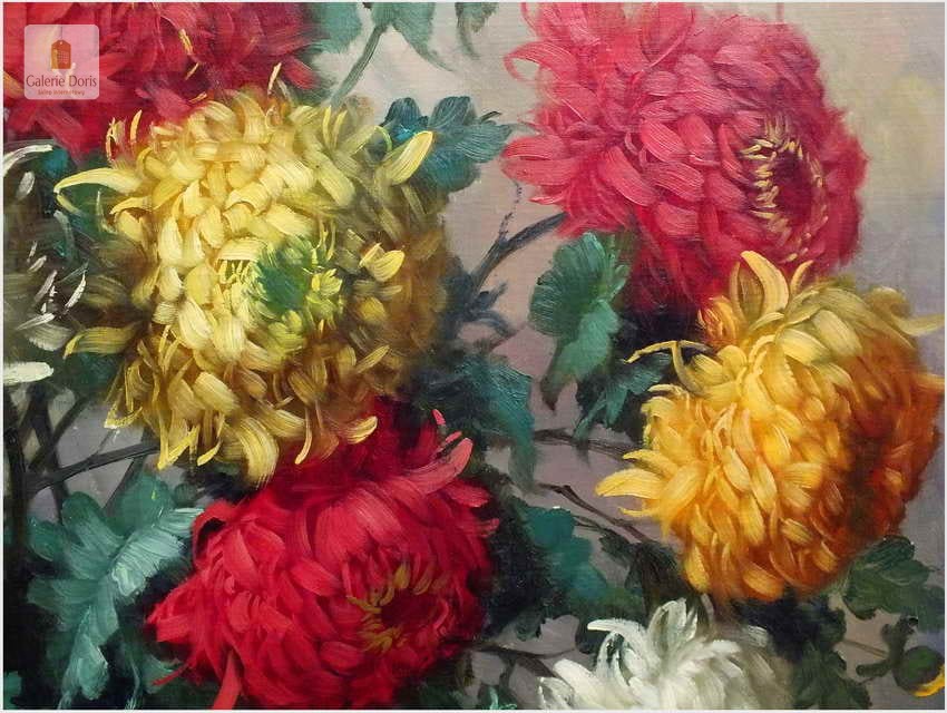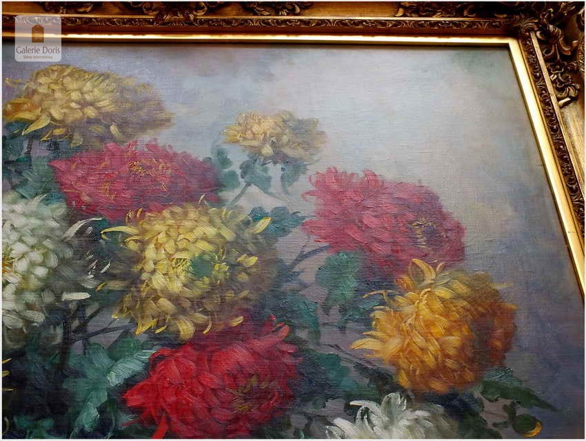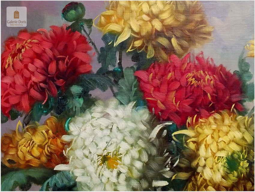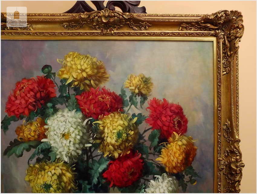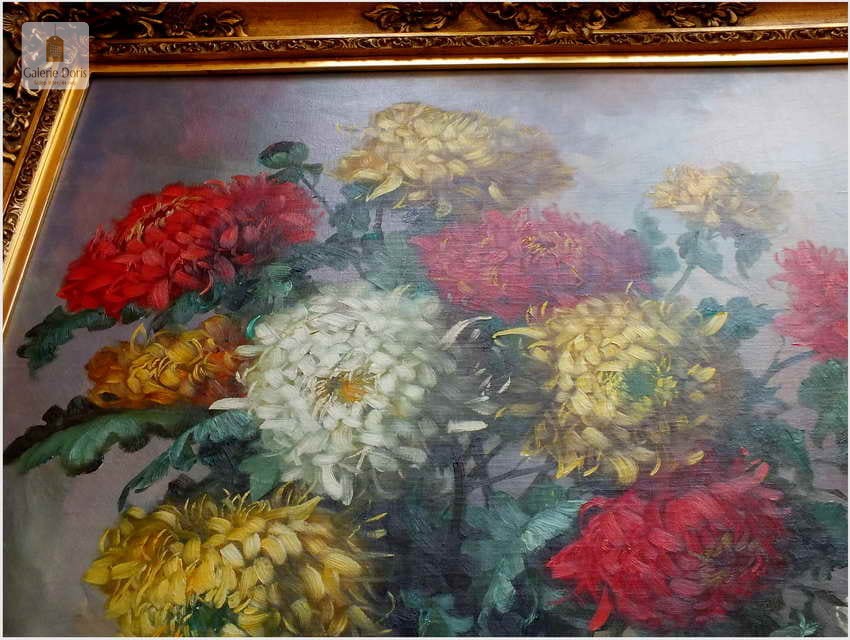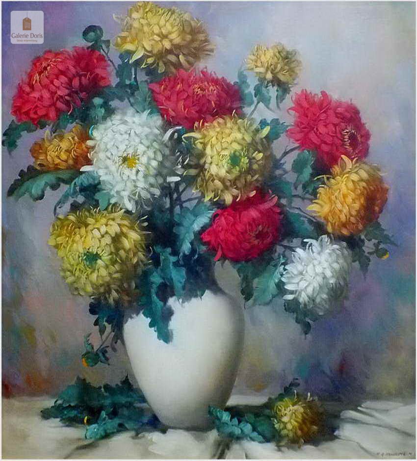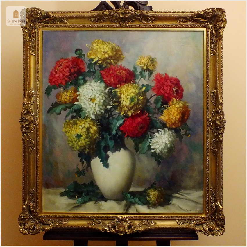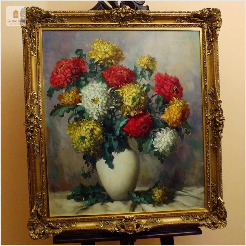 Polecamy niezwykle piękny stary obraz olejny przedstawiający Bukiet kwiatów w wazonie, namalowany olejem na płótnie. Struktura farby wyraźnie wyczuwalna pod palcami. Obraz oprawiony jest w przestrzenną, grubą ramę wykonaną z drewna. Całość jest sygnowana w dolnym rogu ramy. Obraz malowany na grubym płótnie malarskim. Obraz przedstawia typową pracę artysty z kręgu „martwych natur”. Jego malarstwo było zawsze ozdobą i wzbudzało ogromne zainteresowanie szerokiej publiczności.