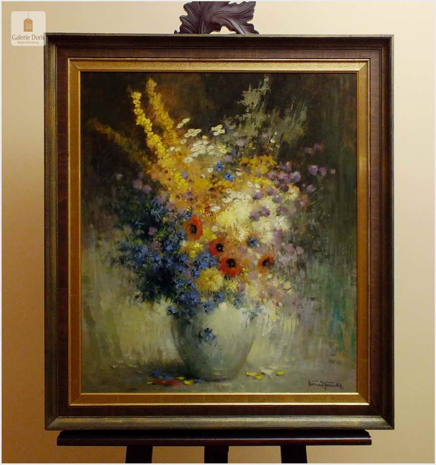 Malarz Bernd Funke urodził się 13 lipca 1902 w Essen. Uczęszczał do Szkoły  Folkwang w Essen. W latach 1921-1923 studiował w Szkole Sztuki w Essen. W latach 1931-1936 Bernd Funke był nauczycielem plastyki w szkole w Meppen, ale został wykluczony przez nazistów z zawodu nauczyciela. W czasie II wojny światowej malował we Francji, Rosji, Rumunii i na Węgrzech. Od 1950 do 1959 prace Jego można było zakupić w Kolonii, gdzie była Galeria a on był związany podpisanym kontraktem. Po 1959-1973 Bernd Funke pracuje jako artysta niezależny w Meppen. W kwietniu 1975 roku, jego obrazy były wystawiane w Domcafé Meldorf. Bernd Funke mieszkał w Tellingstedt i często malował krajobrazy z rejonu Dithmarsche. W dniu 16.10.1988 Bernd Funke zmarł w Heide Schleswig Holstein. Jego bezpieczne i bardzo szybkie pociągnięcie są zrównoważone. Wspaniała ciepła martwa natura - Obraz bez uszkodzeń. Polecamy!