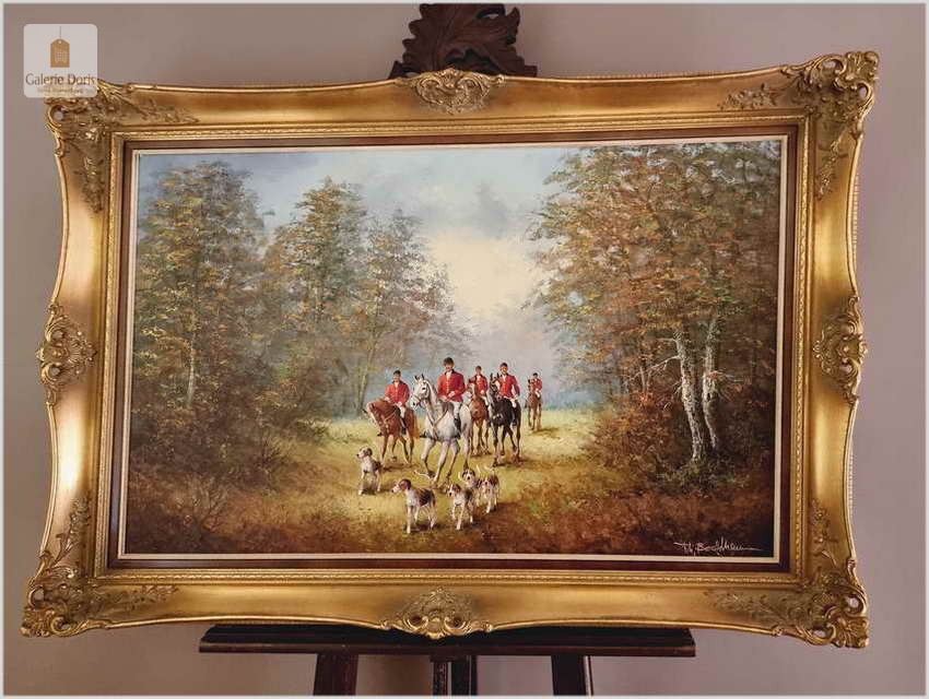 Oryginalny obraz olejny został namalowany na płótnie, przedstawia scenę z polowania Par Force. Artysta nauczył się doceniać ten motyw podczas pobytu we Francji, oraz podróży po Normandii i Prowansji. W obrazach pejzażowych i myśliwskich jego artystyczna ekspresja, osiąga punkt kulminacyjny w ciepłym, realistycznym przedstawieniu. Płótno sygnowane odręcznie przez artystę w dolnym narożniku: Th. Beckman. Osadzone w oryginalną, okazałą przestrzenną ramę w kolorze złotym, z okresu powstania obrazu. Malowidło zawiera bardzo duże walory artystyczne a zarazem jest niezwykle dekoracyjne.