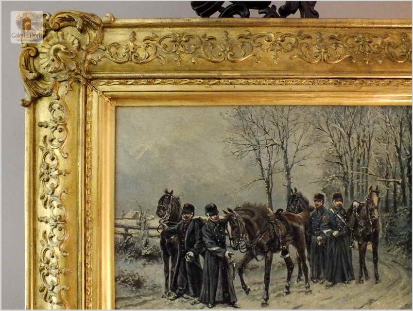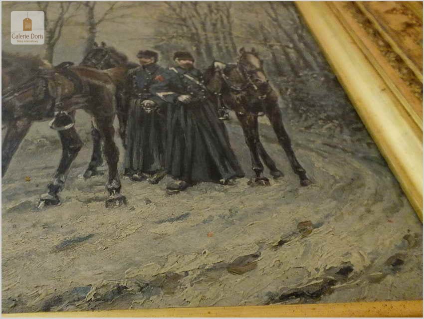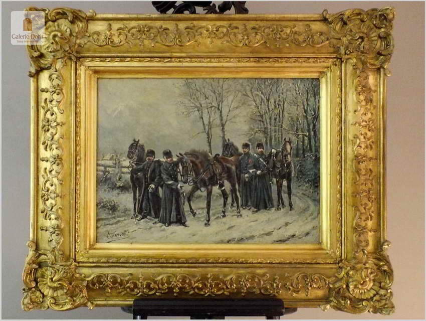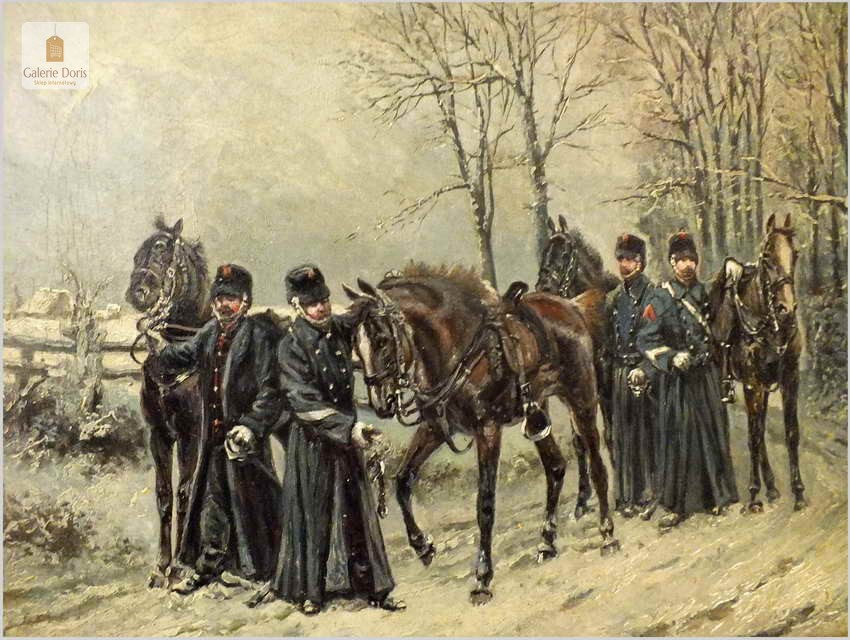 Batalistyka! Piękny zimowy obraz z wojskiem - Lucien pierre Sergent (1849-1904)