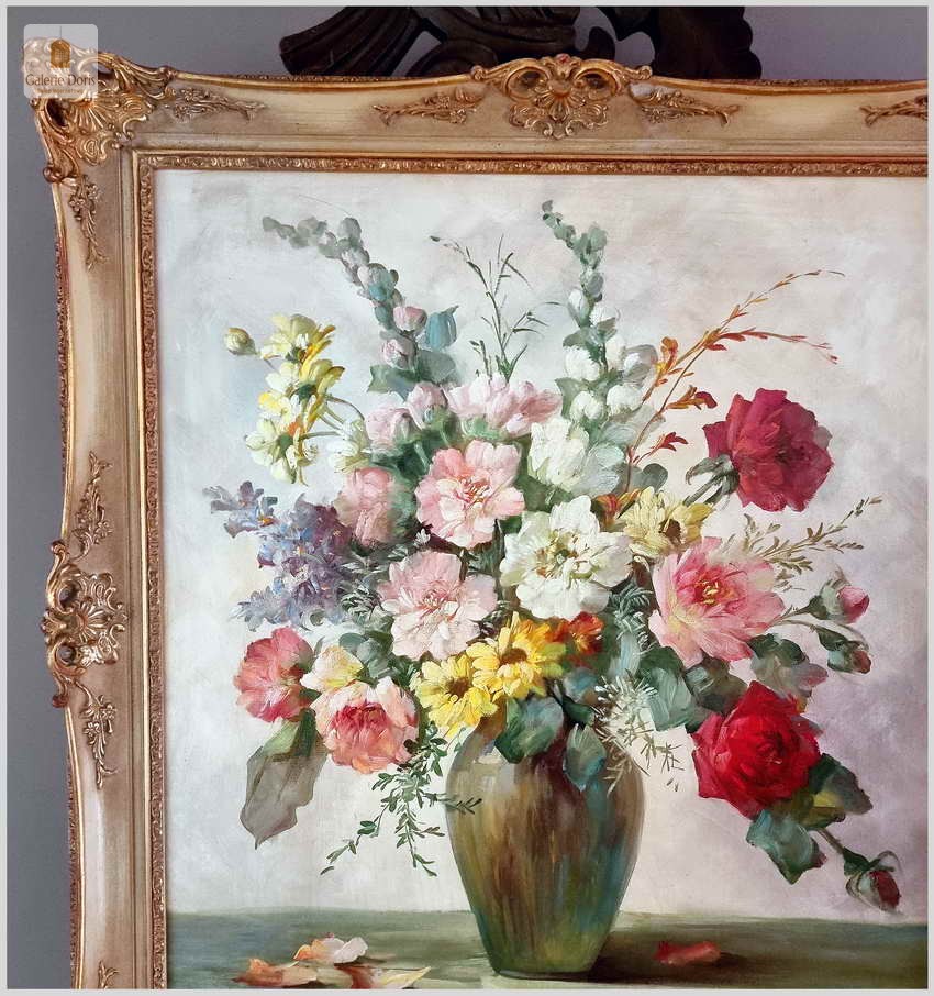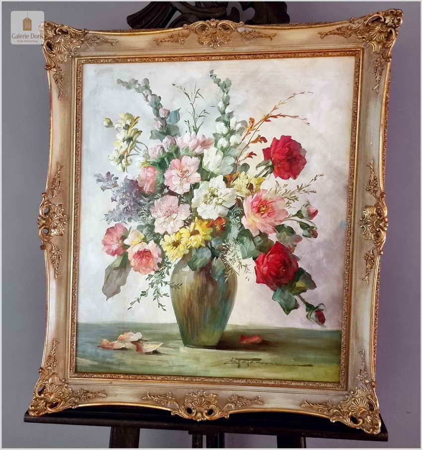 Proponujemy Państwu dobrą pracę olejną, niemieckiej malarki martwych natur. Hedwig Petermann to malarka, która głównym tematem malarskim jaki uprawiała były subtelne a zarazem piękne kompozycje kwiatowe. Uczennica Wilhelma Ecksteina w Düsseldorfie. Malowała martwe natury z owocami i kwiatami, które wyróżniają się dobrą kompozycją, szlachetnym kolorytem, miękkością modelunku i łagodnym nastrojem.