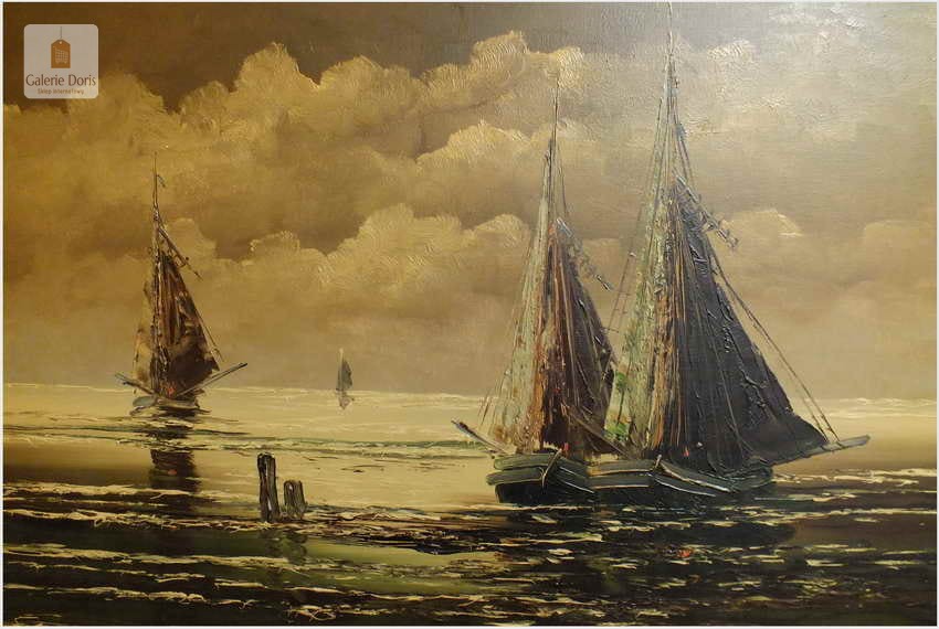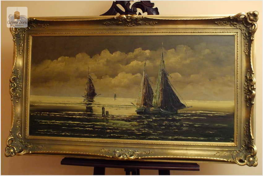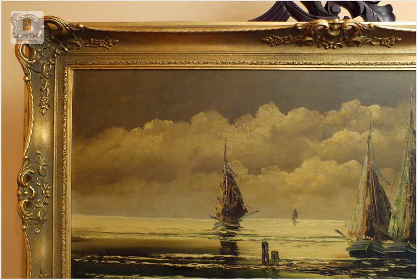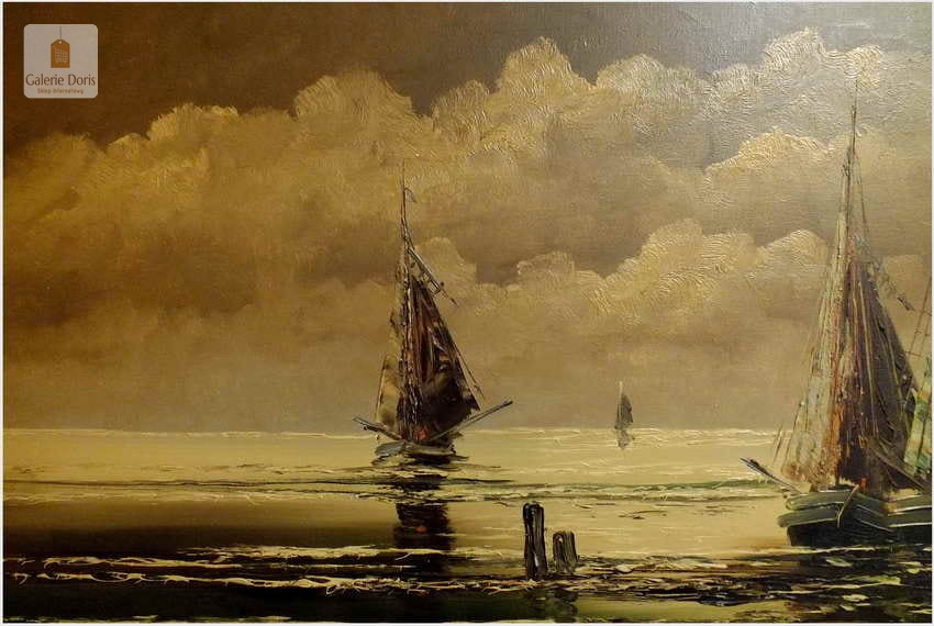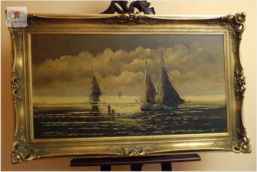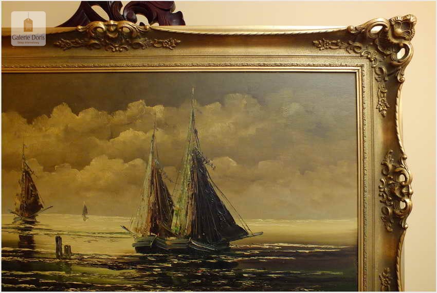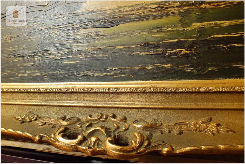 Jean Coune malował różnego rodzaju motywy. W jego twórczości przeważają jednak motywy marynistyczne. Jean Coune, uczeń prof. Helmuta Lieseganga, technika malarska pędzel, szpachla. Jego styl malarski wyróżnia się przede wszystkim zastosowaniem techniki szpachlowej, którą uwypukla bardzo grubo kładzioną fakturę płótna. Jego prace często są spotykane na europejskich aukcjach. Ten obraz jest jego bardzo dobrą pracą z późniejszych lat jego twórczości. Piękną dodatkową ozdobą jest bardzo bogata rama o konstrukcji drewnianej zdobiona sztukaterią w stanie perfekcyjnym. Całość prezentuje się wspaniale. Będzie z pewnością pięknym eksponatem w Państwa kolekcji, domu. Wraz z obrazem idzie gratis ta piękna rama i świadectwo naszej Galerii. Obraz z ramą w stanie bardzo dobrym, bez uszkodzeń!