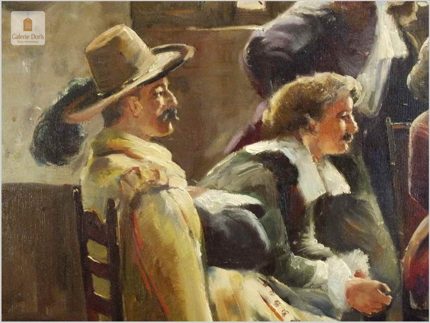 Wielu malarzy malowało historyzujące, kostiumowe sceny rodzajowe rozgrywające się w pałacowych wnętrzach. Praca Dickmanna jest jego narracyjną odmianą. Obrazy jego, oparte na czytelnej i często humorystycznie podawanej anegdocie z pewnością zyskują z każdym dniem na popularności - Polecamy!