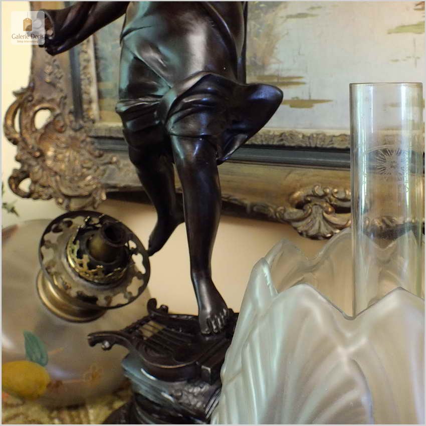 DUŻA STARA FIGURALNA LAMPA NAFTOWA - VICTOR ROUSSEAU (BELGIAN 1865-1954)