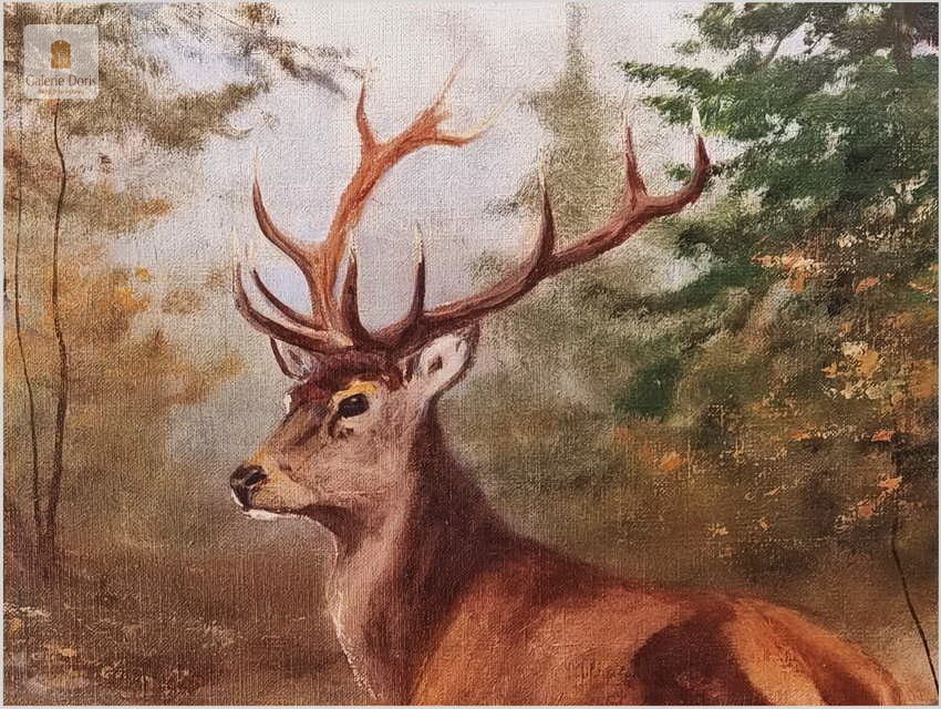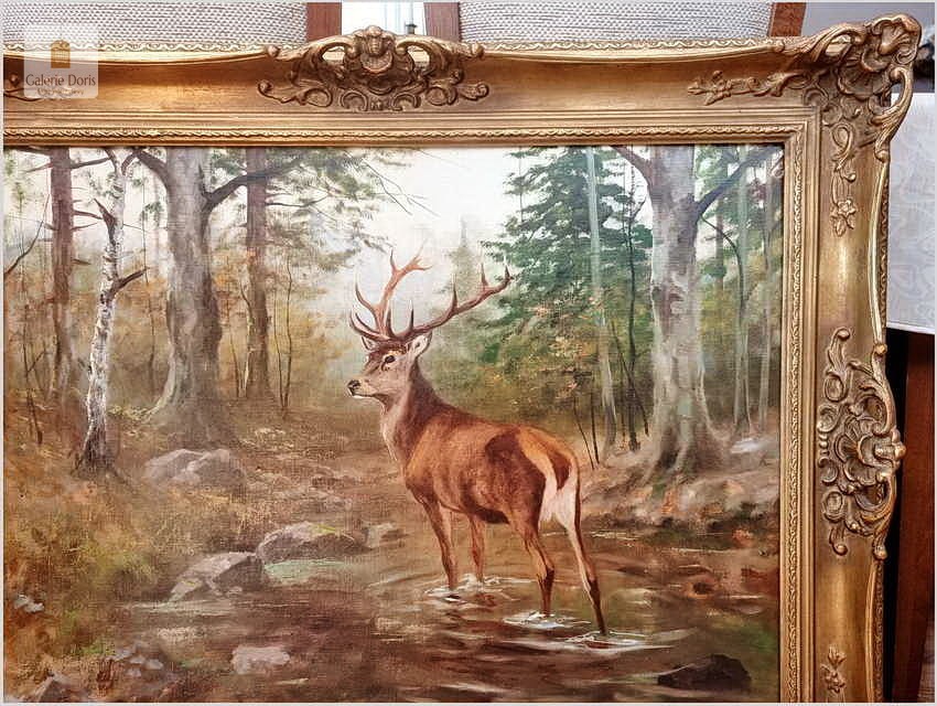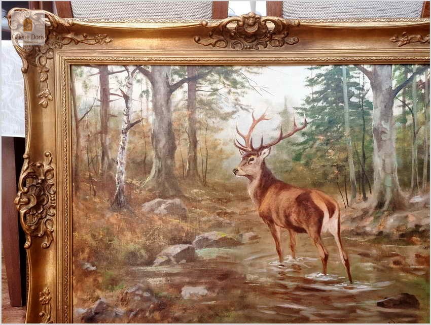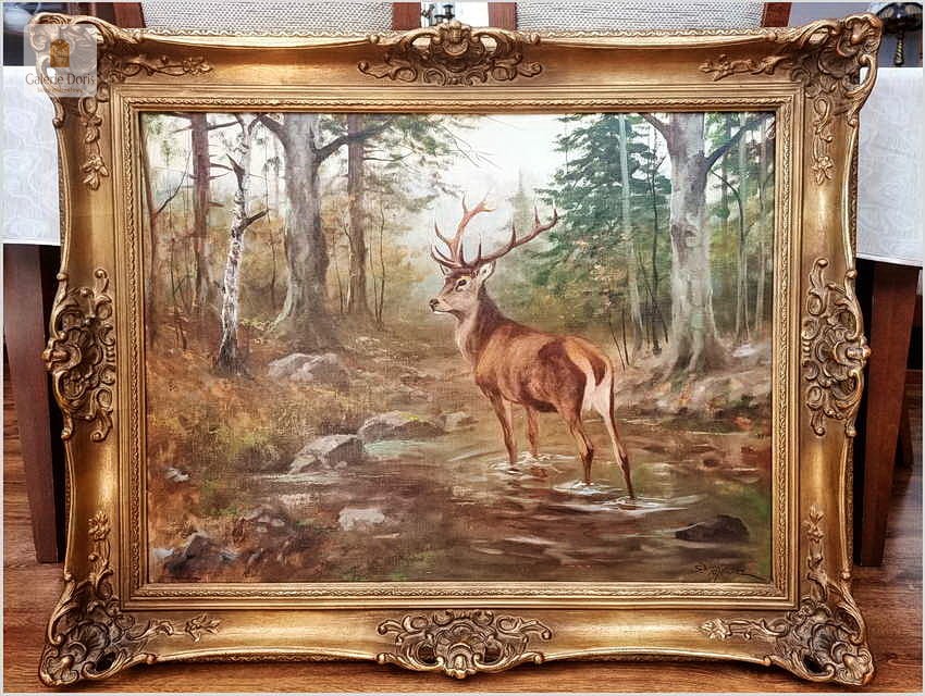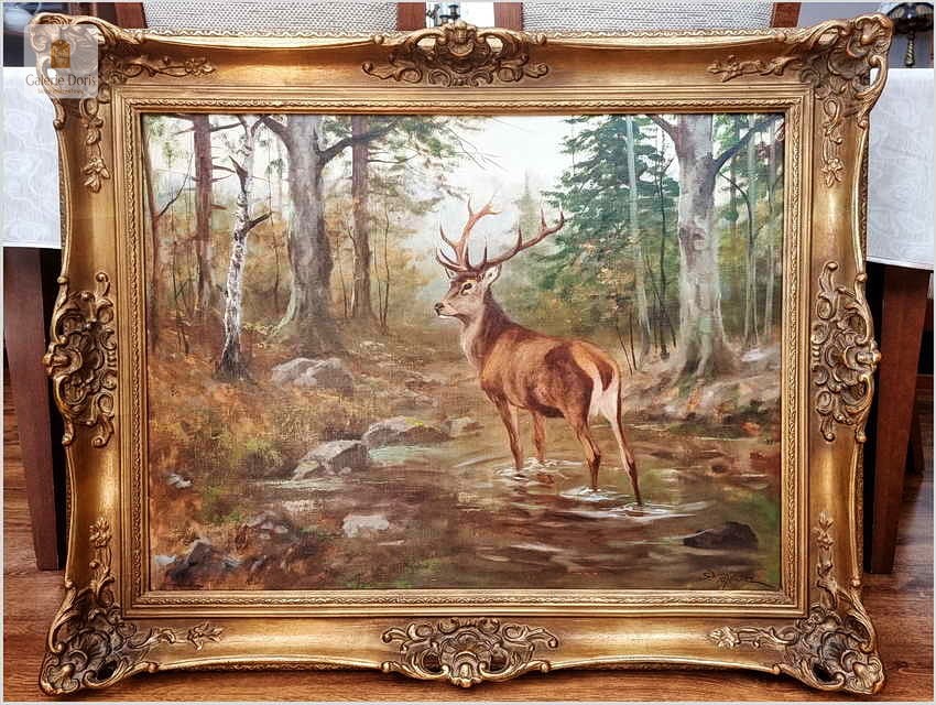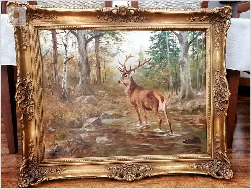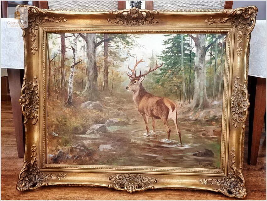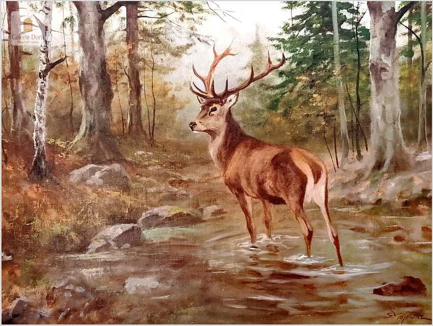 Dostojny Jeleń w leśnym strumieniu - oryg. Georg Majewicz (1897-1965)
