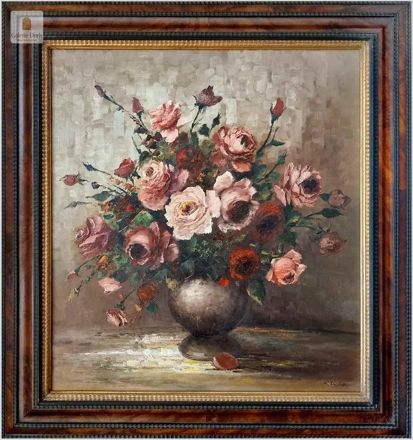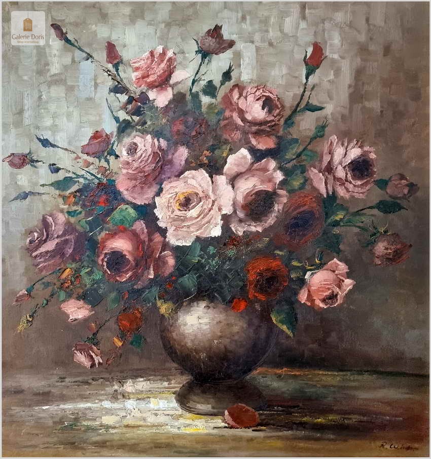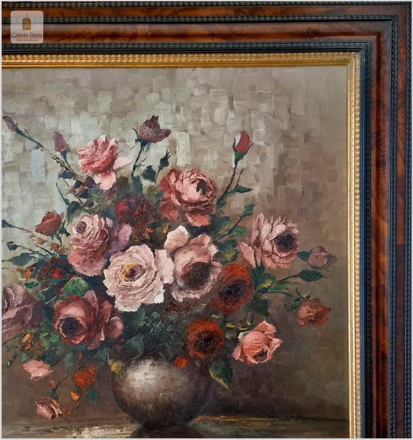 Duży obraz olejny! Herbaciane róże w wazonie - Rudolf Winter *1928