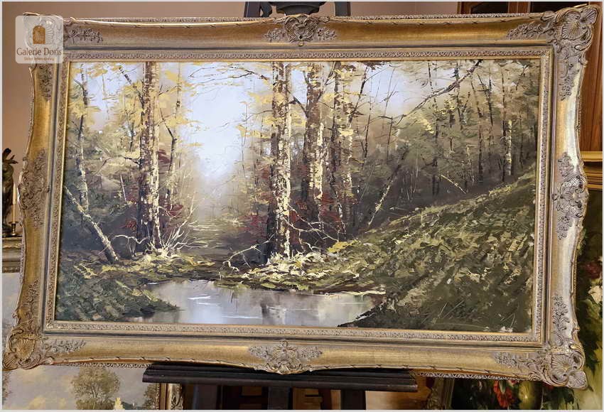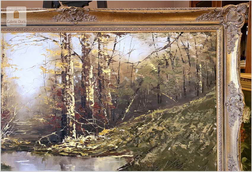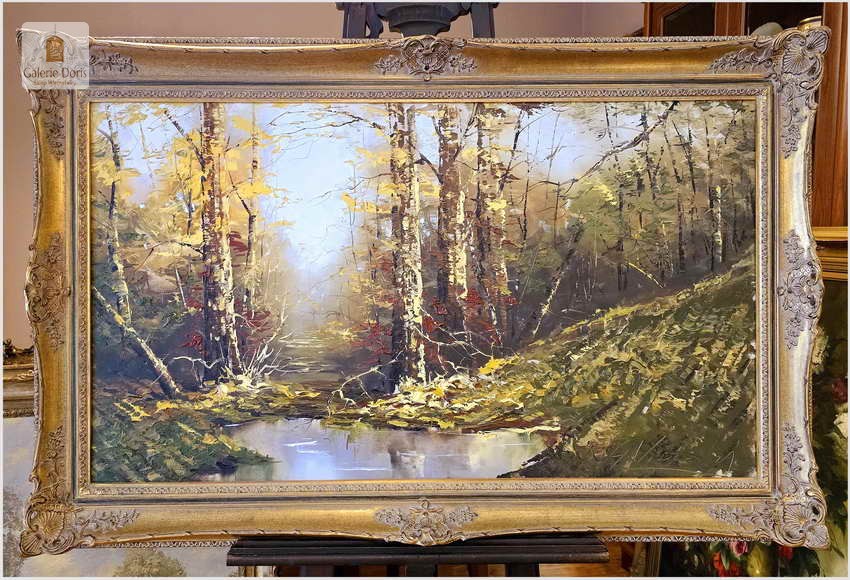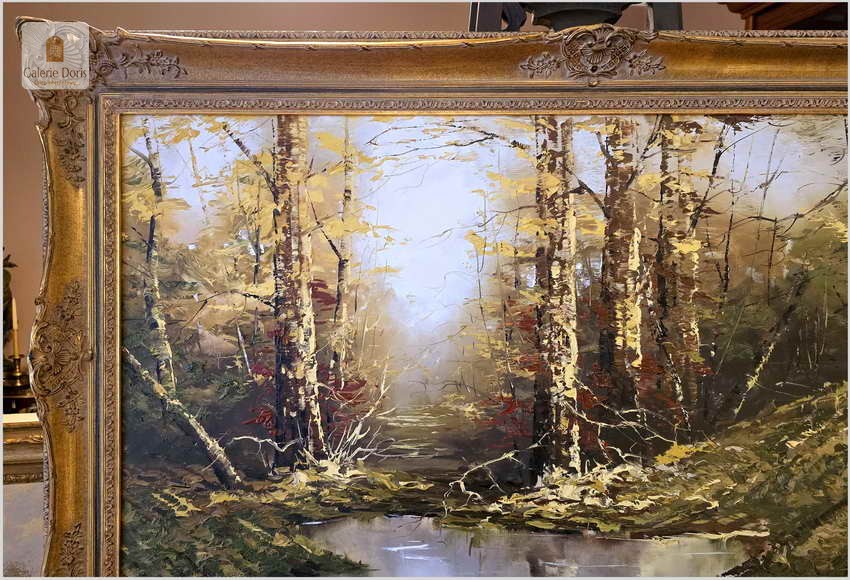 Duży obraz w technice szpachlowej! Tajemniczy las - Gustav Viber (Germany XXw.) 140cm x 80cm