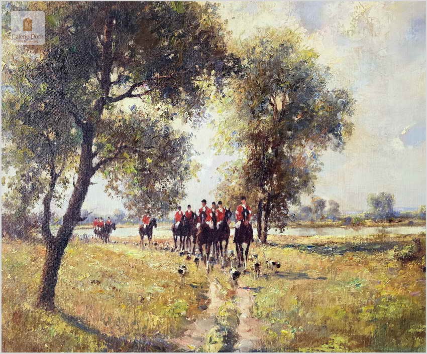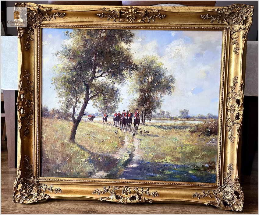 Duży wyjątkowy obraz! Wyjazd na polowanie - Karl mohr ur.( Düsseldorf 1922-2013r.)