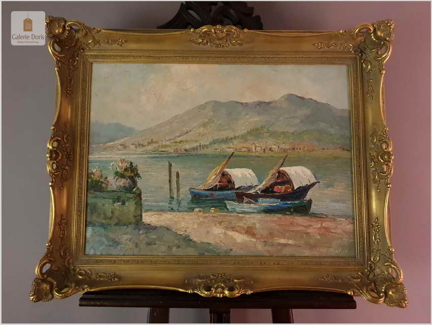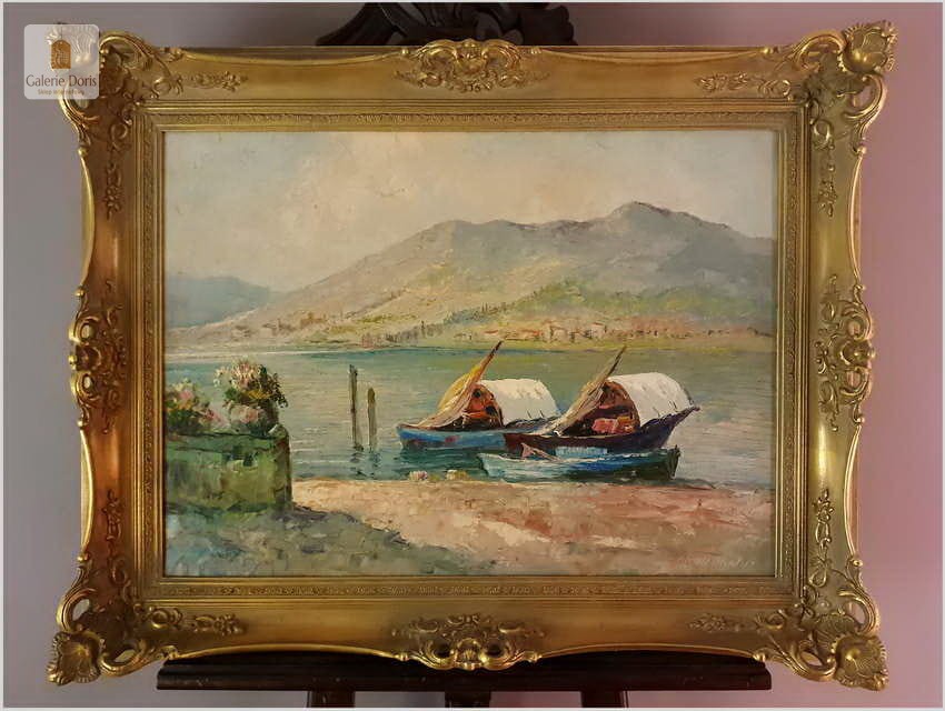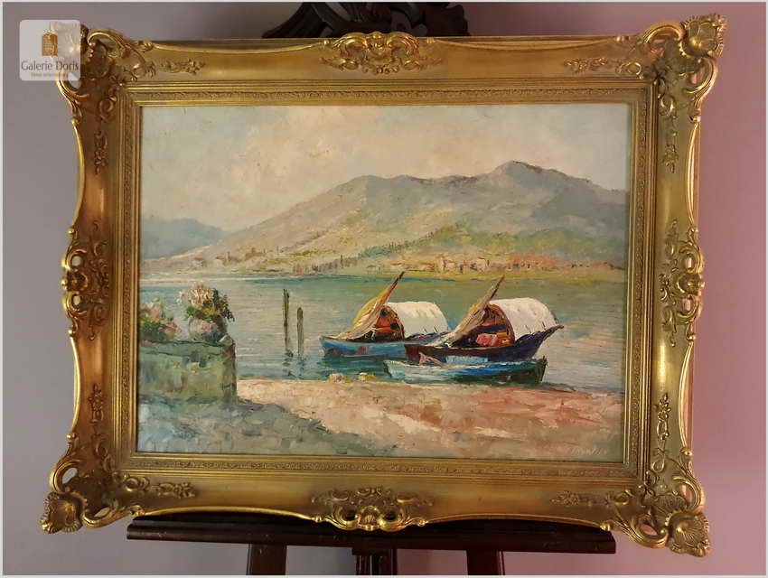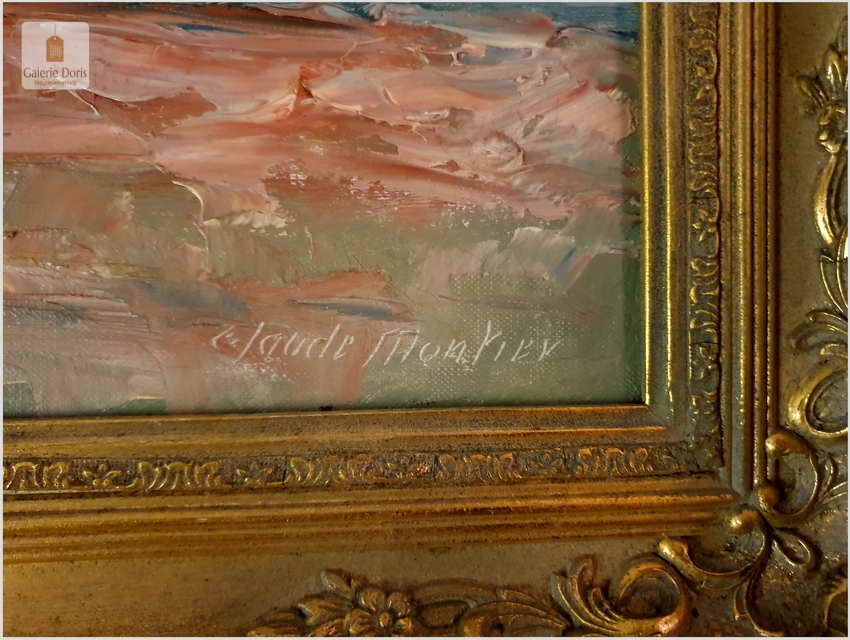 Ten spektakularny obraz olejny na płótnie podpisany „Claude Montier”przedstawia cudowną impresjonistyczną scenę nad brzegiem rzeki. Powstał około 1950-1960 roku. Claude Montier był wysoko cenionym i notowanym na liście francuskim impresjonistą.Ten przykład jest zarówno żywy, jak i oferowany w ogólnie doskonałym oryginalnym stanie, proporcjonalnym do jego wieku. Zamontowana w cudownej ozdobnej ramie, która wspaniale pasuje do obrazu.