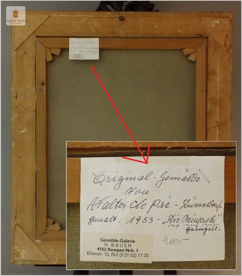 Willi dePré - Malarz niemiecki, urodził się 5 czerwca 1922 roku w rodzinie niemiecko-francuskiej. Ukończył Akademię Sztuki w Düsseldorfie, na kierunku malarstwo. Szybko zyskał sławę poza granicami Niemiec. Na początku swojej kariery miał wizję impresjonizmu, która była postrzegana przez wszystkich jako non plus ultra. Głęboko religijny, skłonny do malowania historycznych tematów. Malował dla Katedry w Düsseldorf. Prace życia klasztornego, które można zobaczyć na wielu jego obrazach oraz wystawach ukształtowała się na stałe w jego umyśle. Po II-wojnie światowej Willi de Pre, wrócił na ziemię w Dusseldorf-Kaiserwerth, był tu przecież jego dom rodzinny. Tam osiadł z żoną Elli. Willi dePré po II wojnie światowej był głównie portrecistą ale z portretów wykonanych tuż po wojnie, nie zachowało się wiele prac. Malował, portretował i w ten sposób zarabiał na chleb. Ponieważ był już na tyle znany w świecie sztuki, Galeria van Wagening na Königsallee w Düsseldorfie, wzięła go do swojej ekskluzywnej galerii w ramach umowy. To od tamtego czasu Willi de Pré malował na większą skalę. Jego Próby wina, mnisi i chryzantemy pojawiły się na wielu jego obrazach. Nie mógł malować na tyle szybko, aby sprostać z popytem jego dzieł, natomiast Galeria z którą miał podpisany kontrakt narzuciła temat portretów cyganek. Zasada jego była prosta, że nie kopiuje. Dlatego wszystkie Cyganki mają własny urok i każdy obraz jest inny. Ostatecznie po 8 latach zakończył kontrakt z Galerią. Teraz Willi dePré może skupić się na innych tematach. Jego miłością była historia, a zwłaszcza kąty starego miasta w Düsseldorfie. Willi de Pré był malarzem, który objawiał miłość paru koloru w swoich pracach. Przeważnie gruntował swoje płótna czerwonym podkładem, co uwidocznione było sygnaturą malarza. Jego prace kształtowała szczególna wyrazistość, był mistrzem światła i cieni. W grudniu 1995, Willi de Pré umiera w swoim rodzinnym domu w Dusseldorf-Kaiserwerth, ale z pewnością pozostanie poprzez swoje obrazy zawsze obecny.