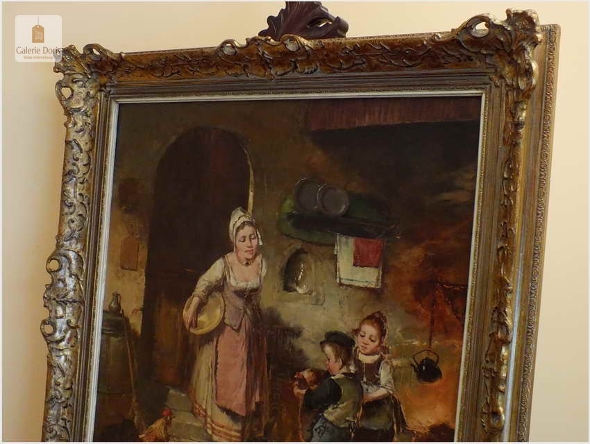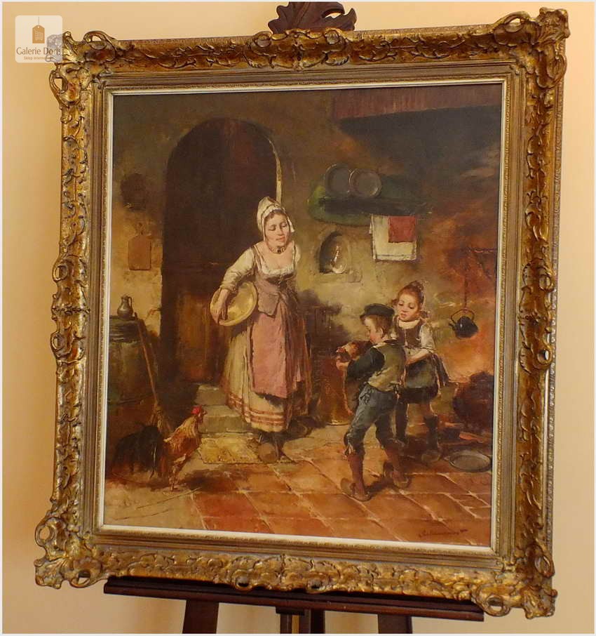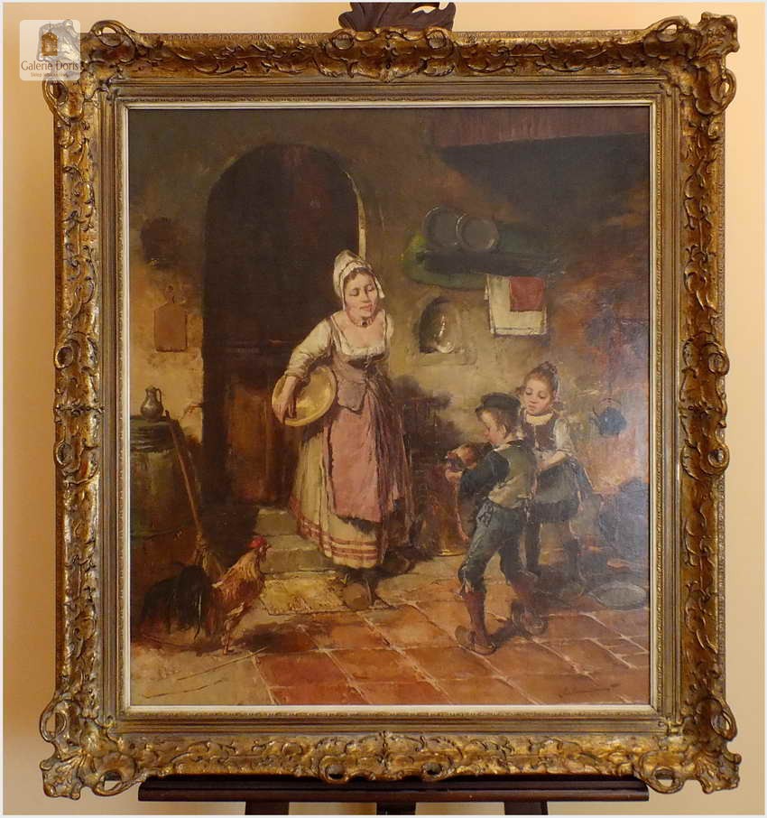 GOSPOSIA I BAWIĄCE SIĘ DZIECI - SCENA RODZAJOWA! DICKMEIS GERHARD (1918-1978r.)