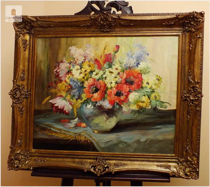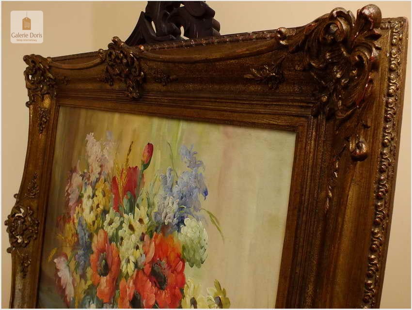 Proponujemy Państwu dobrą pracę olejną, niemieckiej malarki martwych natur. Hedwig Petermann to malarka, która głównym tematem malarskim jaki uprawiała były subtelne a zarazem piękne kompozycje kwiatowe. Uczennica Wilhelma Ecksteina w Düsseldorfie. Malowała martwe natury z owocami i kwiatami, które wyróżniają się dobrą kompozycją, szlachetnym kolorytem, miękkością modelunku i łagodnym nastrojem.