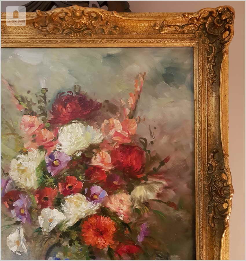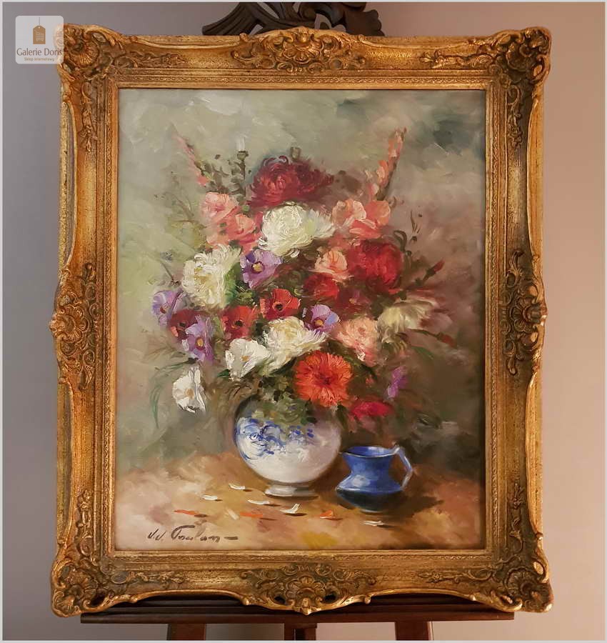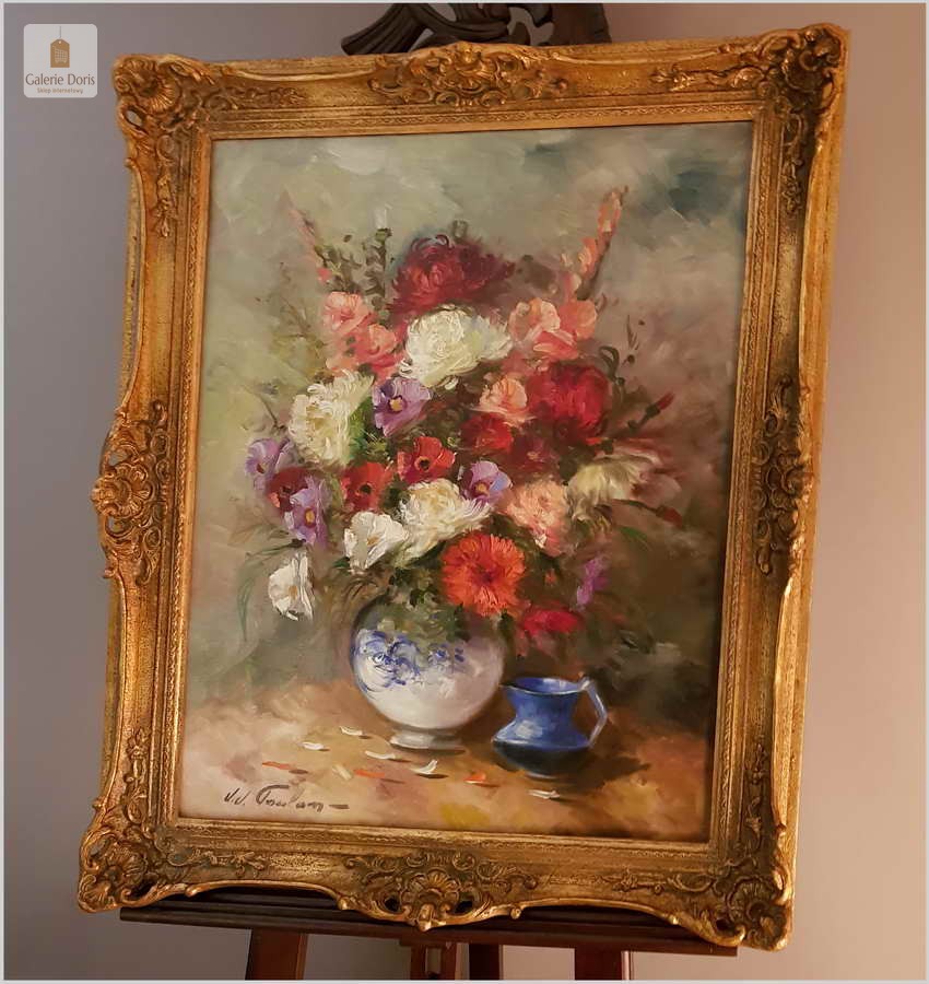 Artysta studiował w Akademii Sztuk Pięknych w Leuwen, studia ukończył nagrodą - obok złotego medalu - było roczne stypendium na pobyt w Paryżu. W malarstwie artysty splatały się różne style, stałą zaś cechą twórczości J.J-Foulona było inspirowanie się naturą, której głęboka znajomość leżała u podstaw każdego z namalowanych przez artystę dzieł. Obraz po profesjonalnym czyszczeniu. piękne żywe kolory. Położony dobrej jakości werniks. Jest to z pewnością wspaniała lokata kapitału. Gwarantujemy oryginalność obrazu oraz zgodność opisu w aukcji. Będzie z pewnością pięknym eksponatem w Państwa kolekcji, domu.