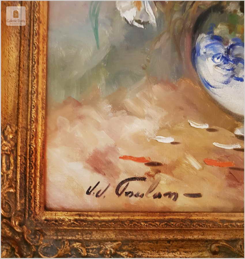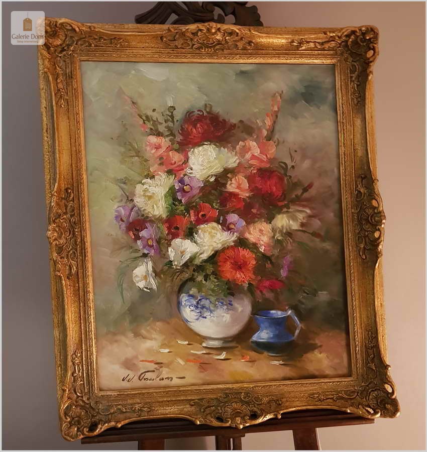 J.J.Foulon, Belgia (1923-1980). Jean Jacques Foulon urodził się w 1923 roku w Kraainem. Malował pejzaże i kompozycje z kwiatów. Student Alfreda Delaunois z Akademii Leuven. Wystawiał w Belgii, ale także w Kanadzie i Stanach Zjednoczonych. Prace J.J.Foulon są w wielu prestiżowych kolekcjach sztuki współczesnej. Obrazy tego malarza można oglądać także w muzeum l'Académie de Beaux-Arts de Louvain. Malarz notowany w ArtPrice.
