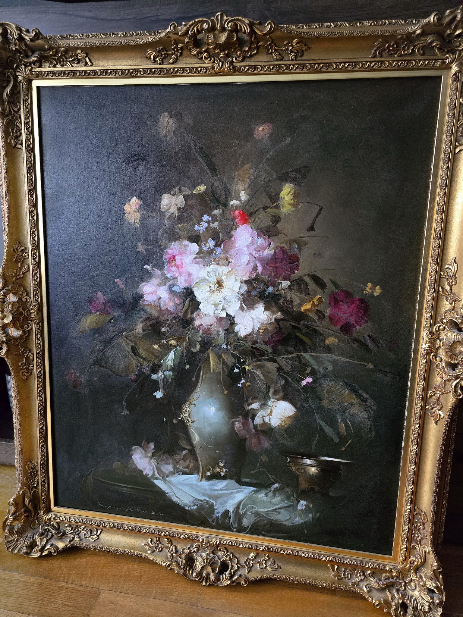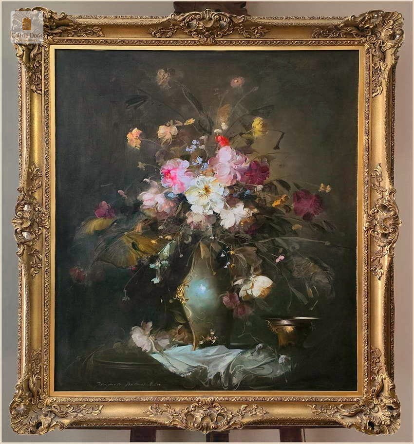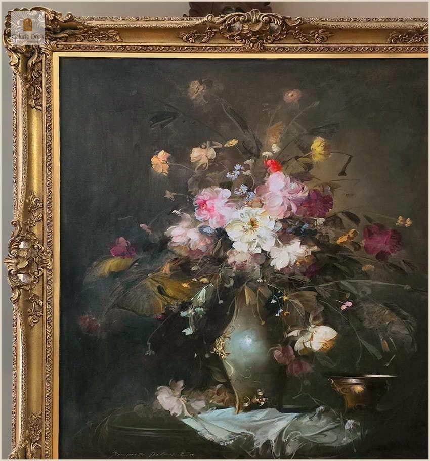 Polecamy piękny dużych rozmiarów pałacowy obraz olejny przedstawiający bukiet kwiatów w wazonie. Obraz oprawiony jest w przestrzenną ramę wykonaną z drewna. Całość jest sygnowana w dolnym rogu ramy. Na płótnie widoczna delikatna patyna. Obraz przedstawia typową pracę artysty z kręgu „martwych natur”. Malarstwo Belogh - Endre, było zawsze ozdobą i wzbudzało ogromne zainteresowanie szerokiej publiczności. Do obrazu dołączamy certyfikat - Polecamy!