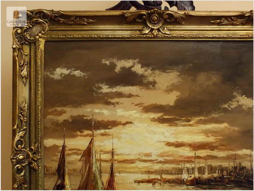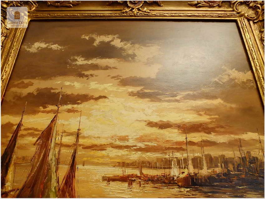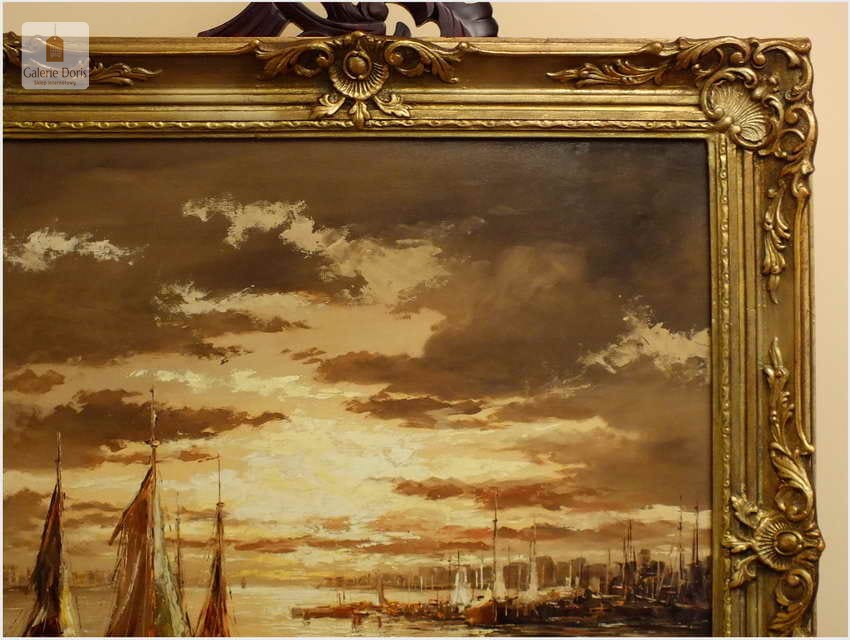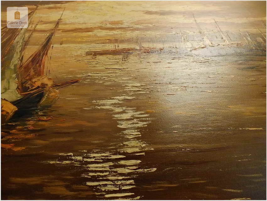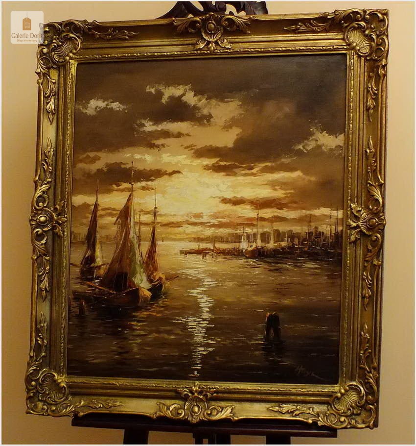 Przedmiotem sprzedaży jest znakomity obraz, nokturn marynistyczny - olej na płótnie. Obraz sygnowany w prawym dolnym rogu. Całość w oryginalnym dobrym stanie zachowania. Polecamy uwadze malarstwo zachodnio-europejskie z poł. XXw. Obraz niesamowicie dekoracyjny, nastrojowy, wysokiej klasy w pięknej oprawie - Polecam do wystroju wnętrza.