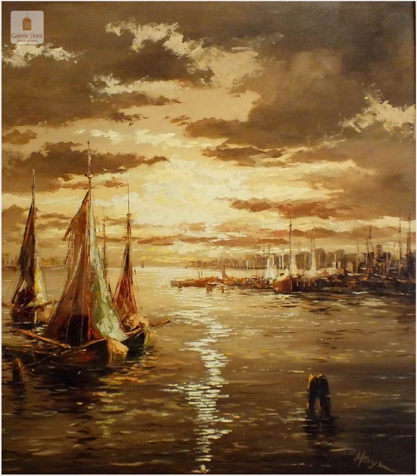 ŁODZIE NA MORZU - Hayr XXw. - (piękny nokturn XXw.)
