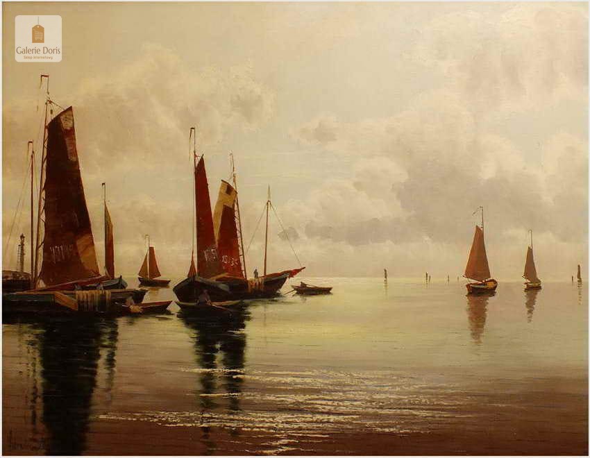 ŁODZIE RYBACKIE NA MORZU - ERNST HUGO LORENZ MUROWANA (1872-1950)