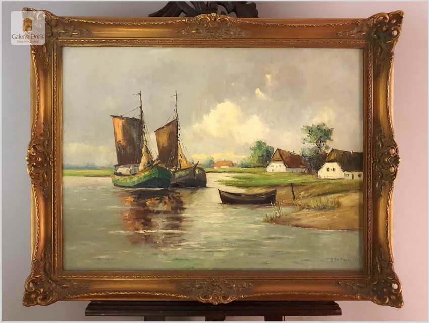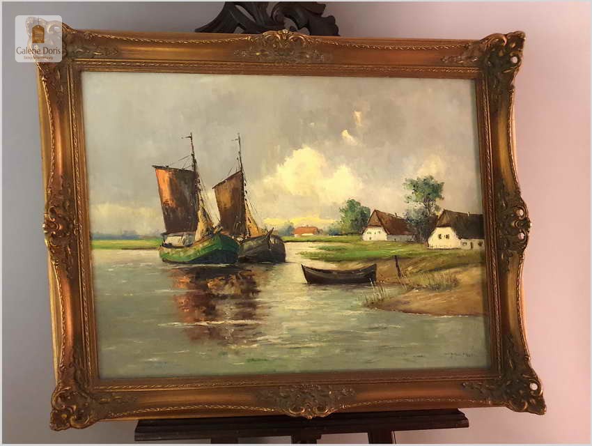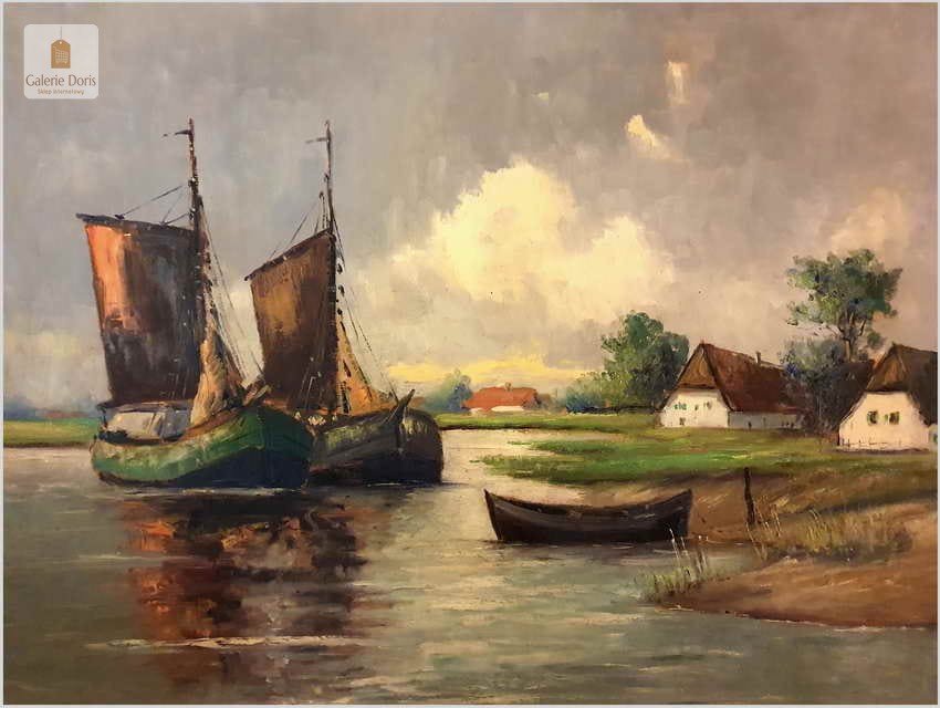 Łodzie przy brzegu - Dieter Lukas Larsen (1936-2001 Düsseldorf)