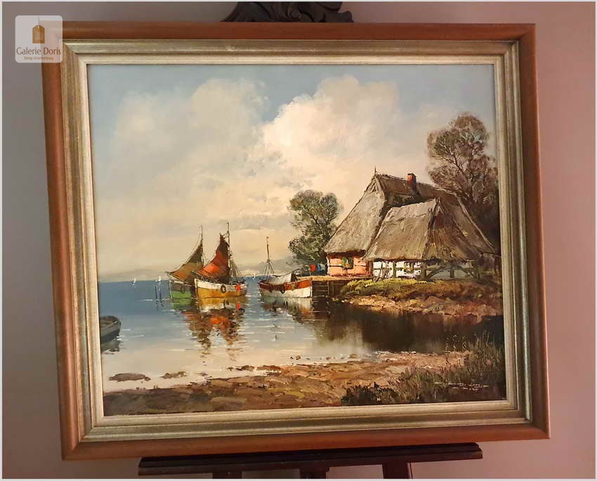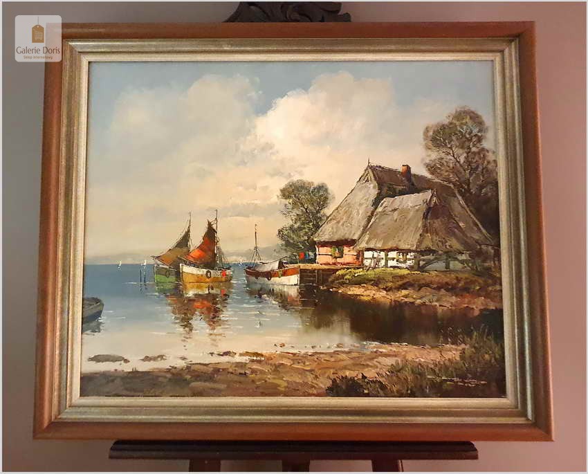 Łodzie przy brzegu - Dieter Lukas Larsen (1936-2001 Düsseldorf)