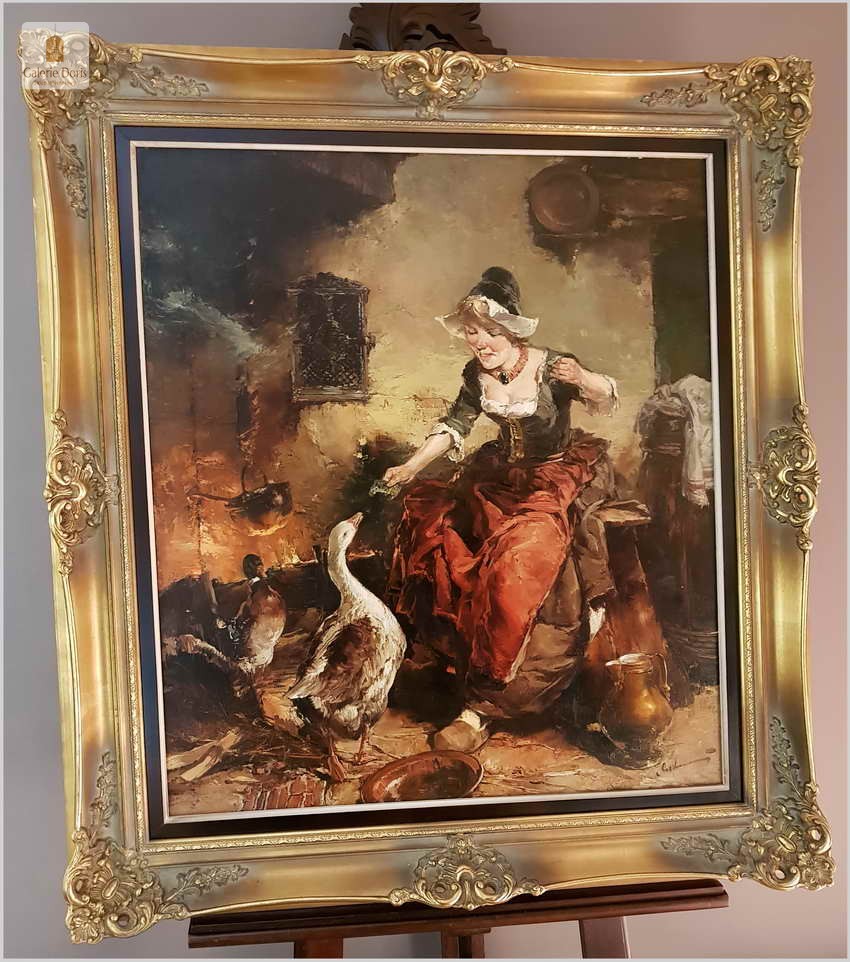 MALARSTWO AUKCYJNE! GOSPOSIA Z GĘSIAMI - DICKMEIS GERHARD (HEINSBERG 1918 - 1978 JÜLICH) ROZMIAR XL