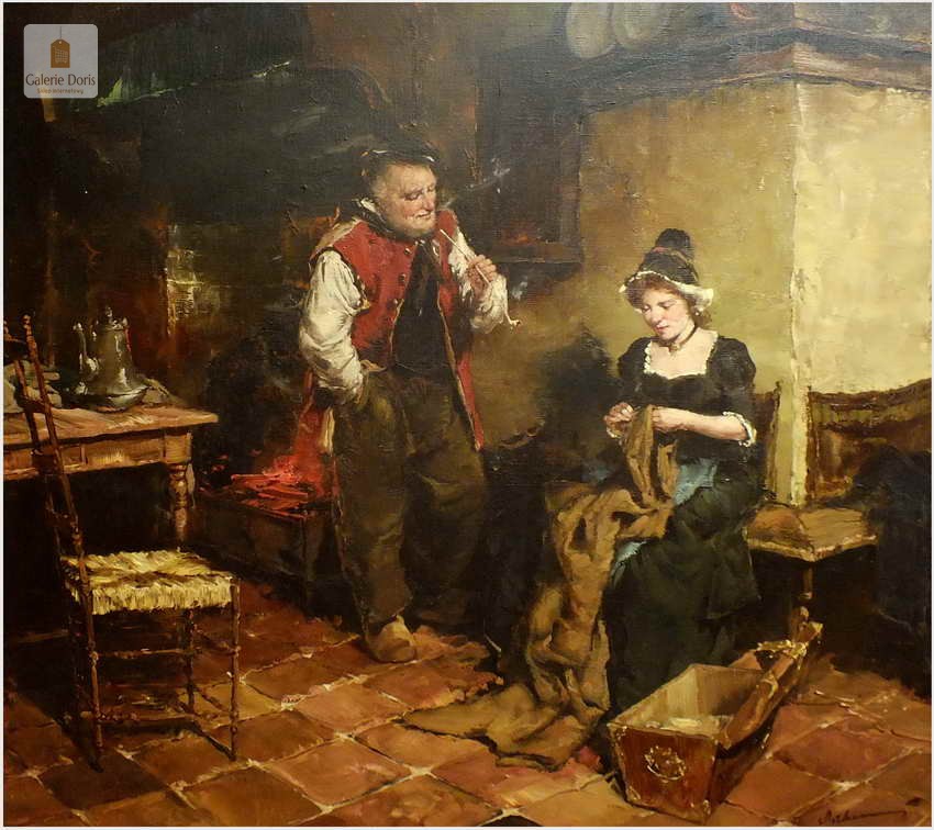 MALARSTWO AUKCYJNE! SCENA RODZAJOWA - DICKMEIS GERHARD (Heinsberg 1918 – 1978 Jülich)