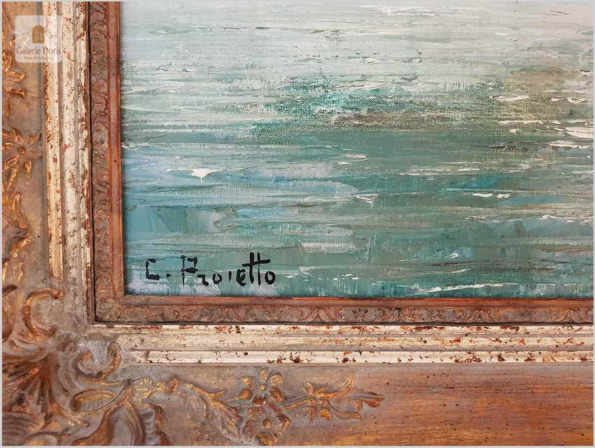 Constantino Proietto (1900 Catania/Sizilien bis 1979) Znany włoski malarz pejzaży, marynista. Studium artystyczne Florencja u prof. Fernando Cappuccia, wiele wystaw krajowych i międzynarodowych w Europie i USA, przez wiele lat mieszkał w Stuttgarcie, podróże studyjne w Europie, jego obrazy malowane w formie impresjonizmu, głównie w technice szpachlowej. Wymieniony w odpowiednich katalogach artystów 16 x w artprice. Więcej informacji można znaleźć na stronie internetowej: www.cproietto.com Osiedlił się w Stuttgarcie pod koniec II wojny światowej. Na początku lat 50 otworzył studio, malował w swoim atelier / studio, mieszczącym się pod modnym adresem Stuttgart-S. Danneckerstraße 34.