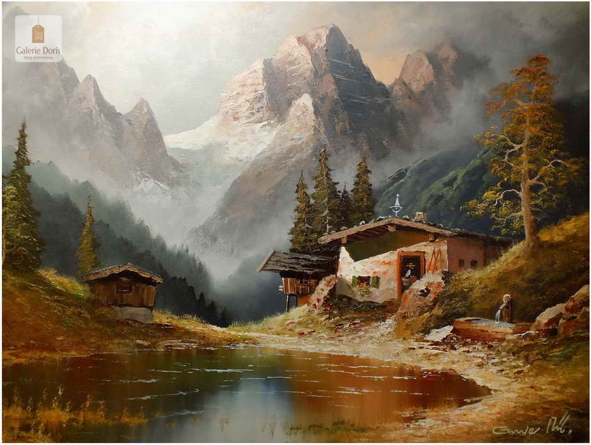 MEGA RARYTAS! ALPEJSKI KRAJOBRAZ - GUSTAW WEISS/GUWE (130 x 110)