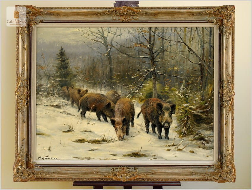 Zachęcam do zapoznania się z dużą ilością fotek obrazu. Pamiętaj! - Nawet dobrej jakości sprzęt fotograficzny nie odda tego, co malarz chciał nam przekazać, przelewając swoją wizję na płótno. Willi Lorenz w sposób perfekcyjny potrafił pokazać żywiołowości malowanych zwierząt. Ma bardzo wysokie notowania, zachęcamy do wpisania imienia i nazwiska w Google lub odnaleźć malarza w prestiżowych katalogach o sztuce. Obraz w idealnym stanie . Polecamy!