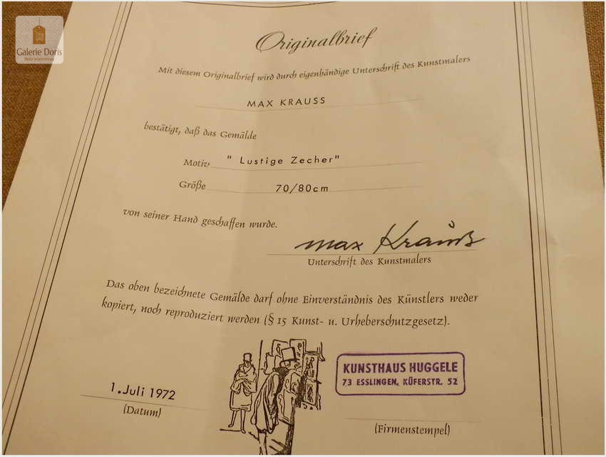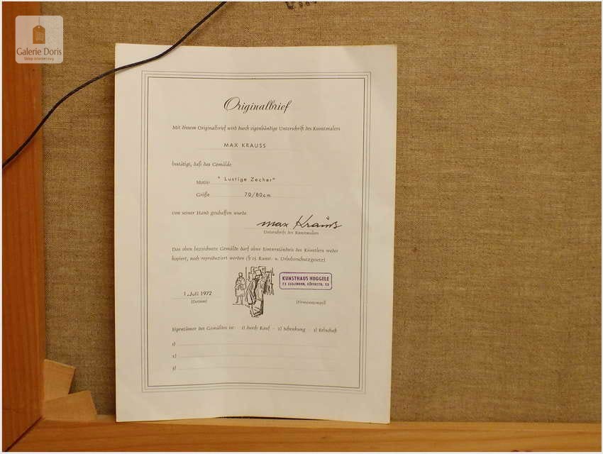W Galerie Doris stosujemy sztywne i rzetelne reguły wystawiania dokumentów, ponieważ wierzymy w odpowiedzialność za słowo pisane. Pragniemy ostrzec przed praktykami niektórych galerii, które sugerują, że sprawdzenie dostępności certyfikatu do konkretnego obrazu jest zbędne, gdyż "wszystko u nich jest oryginalne". Argumentują to faktem, że obrazy są namalowane ręcznie – również te niezidentyfikowane. Jest to bezwartościowy dodatek marketingowy, mający na celu jedynie zwiększenie zysku sprzedażowego gdyż wystawiają certyfikat na obrazy niezidentyfikowane.