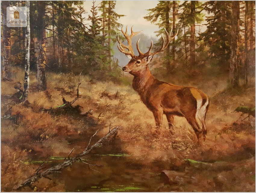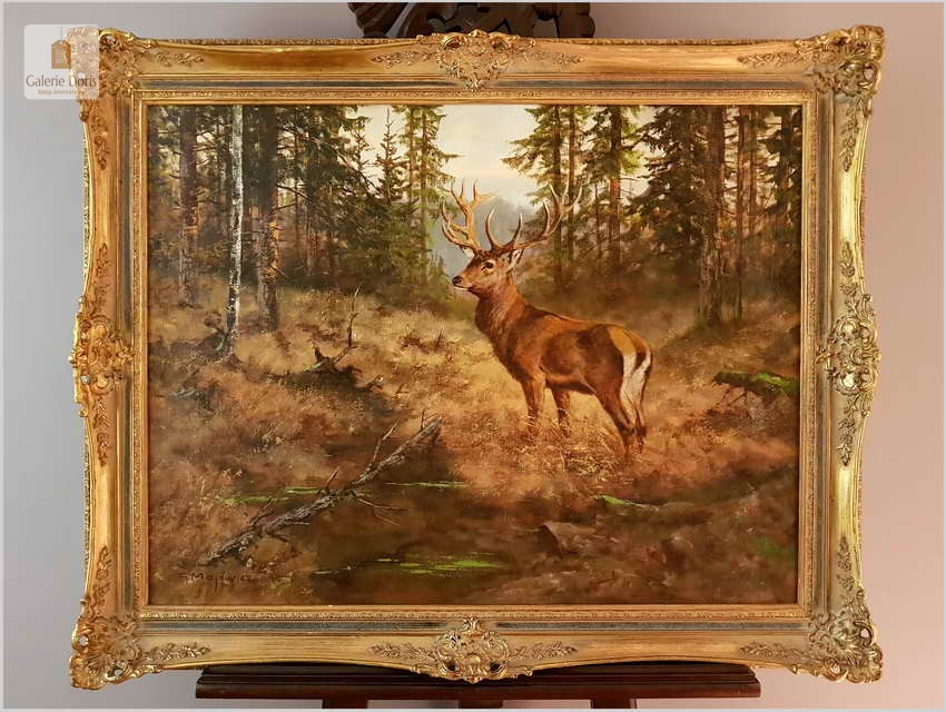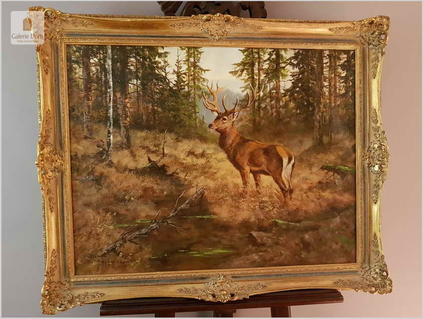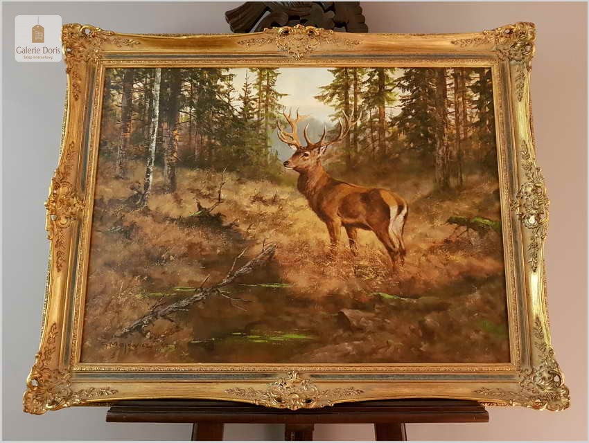 Malarstwo Aukcyjne! Jeleń Na Rykowisku - oryg. Georg Majewicz (1897-1965)