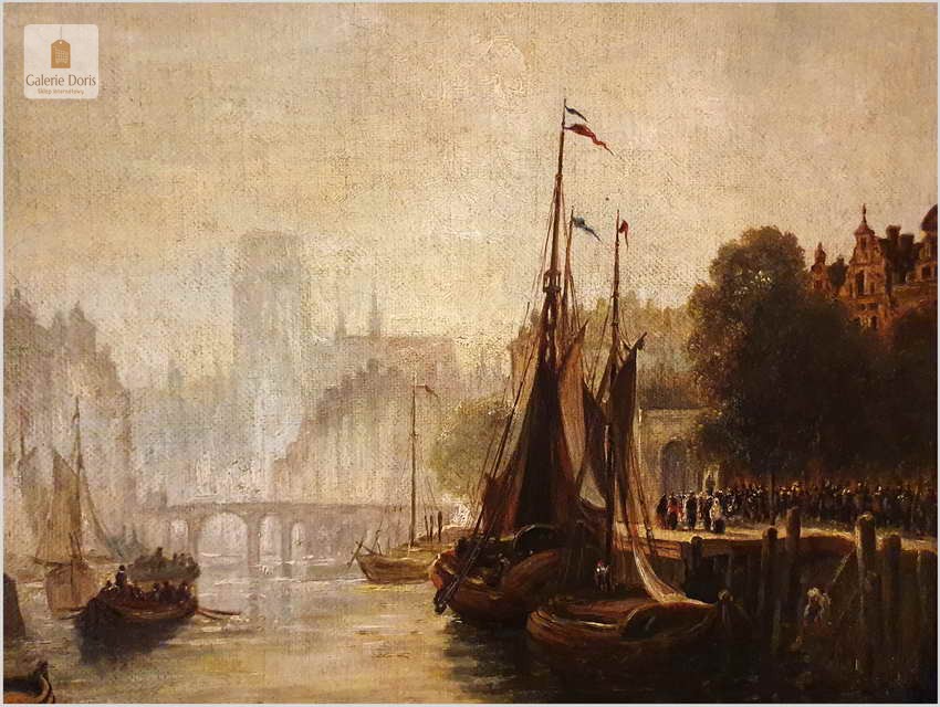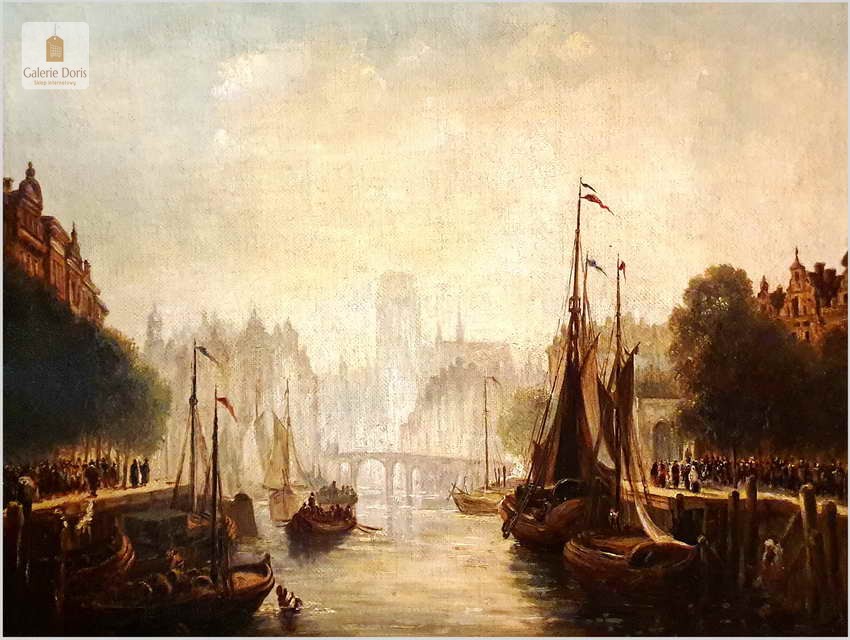 Widok na stare nabrzeże portowe z dużą ilością postaci. Styl Zillera jest tak charakterystyczny i natychmiast rozpoznawalny, jego nostalgiczne obrazy zawsze były wykonywane z wyraźnymi szczegółami i ciepłą paletą, z architektonicznym akcentem, jednocześnie starając się uchwycić życie i środki utrzymania. W internecie można natrafić na liczne obrazy syna o tym samym imieniu, też wysoko notowanego malarza. Obraz malowany na grubym płótnie - Polecamy!