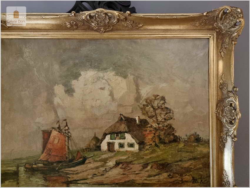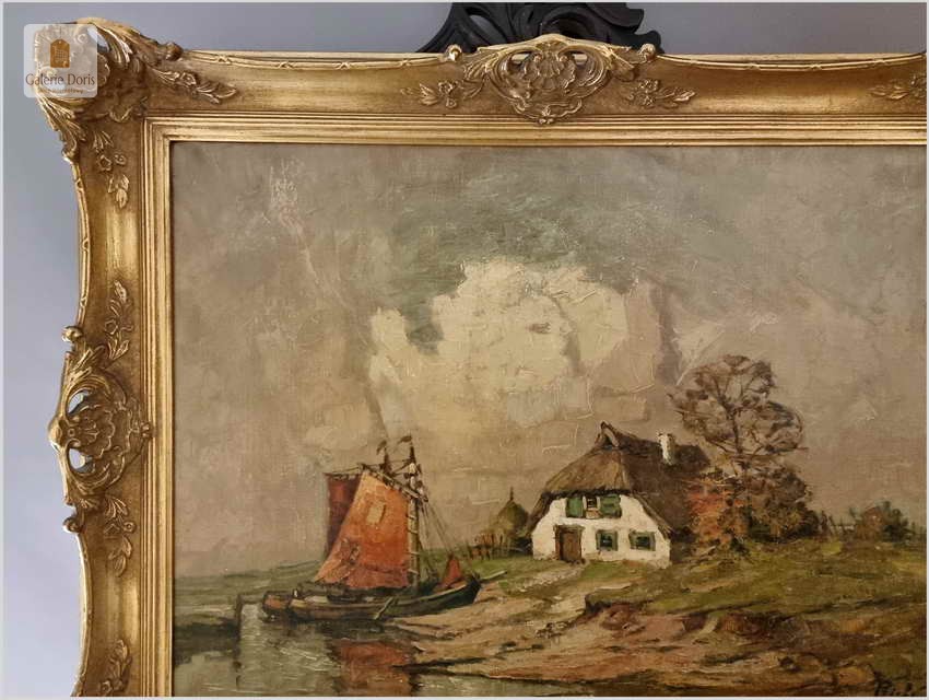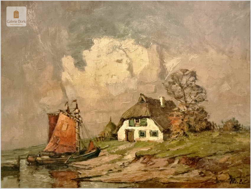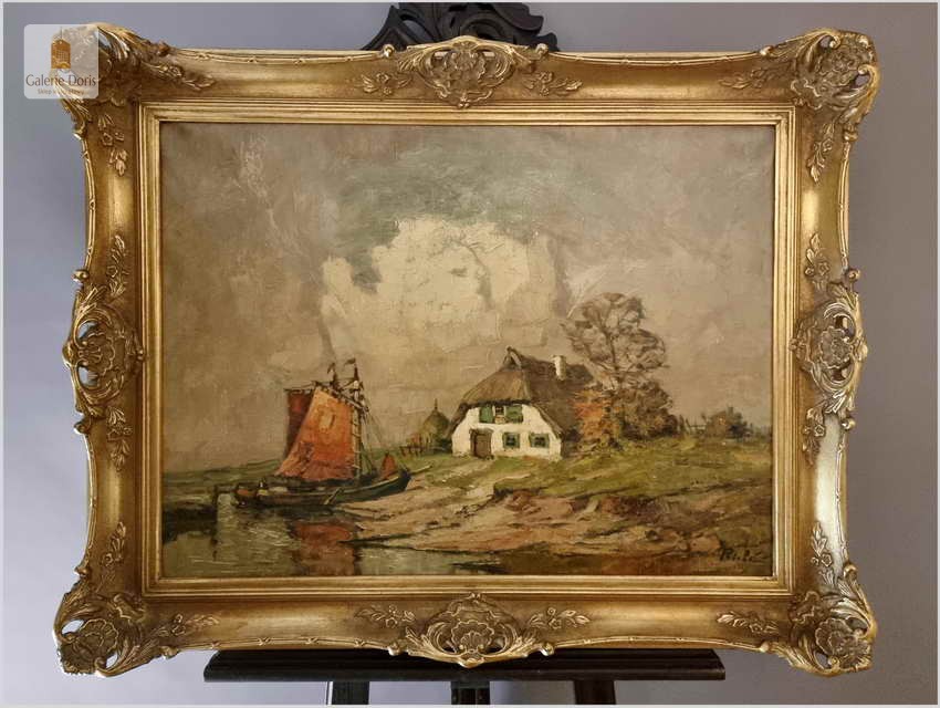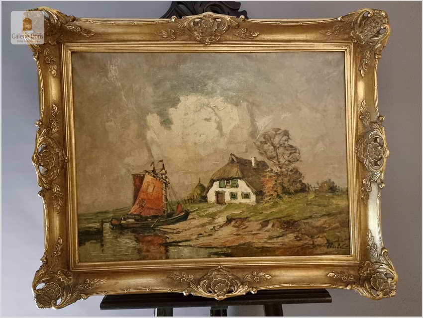 Malarstwo Marynistyczne! Łodzie w wiosce rybackiej - Rudolf Priebe (Kiew 1889-1964 Hamburg)