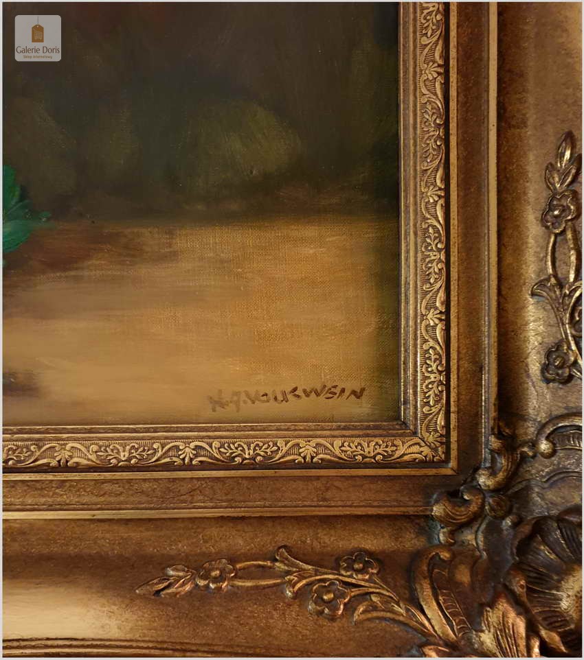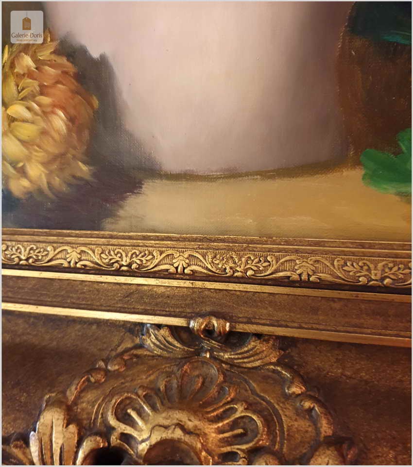 Polecamy niezwykle piękny stary obraz olejny przedstawiający Bukiet kwiatów w wazonie, namalowany olejem na płótnie. Struktura farby wyraźnie wyczuwalna pod palcami. Obraz oprawiony jest w przestrzenną, grubą ramę wykonaną z drewna. Całość jest sygnowana w dolnym rogu ramy. Obraz malowany na grubym płótnie malarskim. Obraz przedstawia typową pracę artysty z kręgu „martwych natur”. Jego malarstwo było zawsze ozdobą i wzbudzało ogromne zainteresowanie szerokiej publiczności.