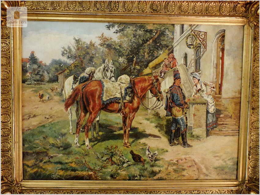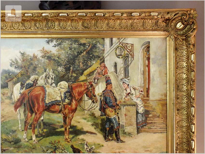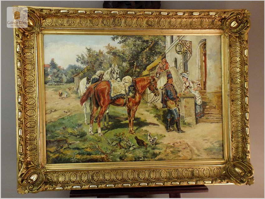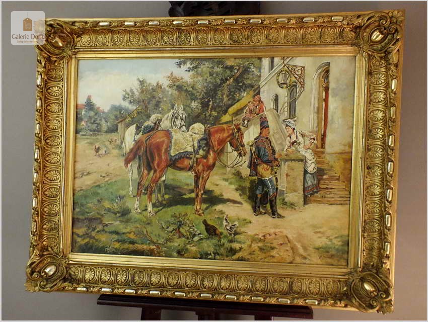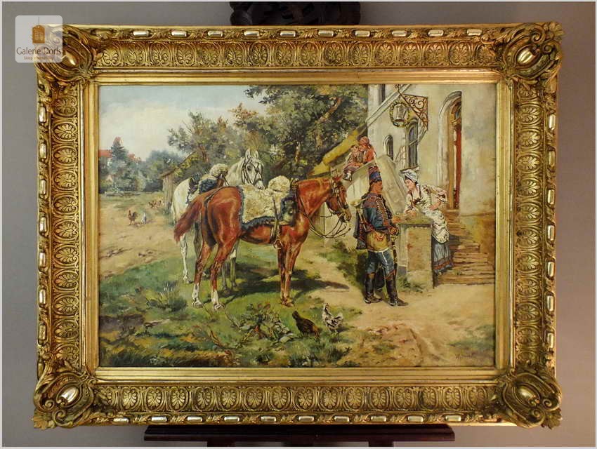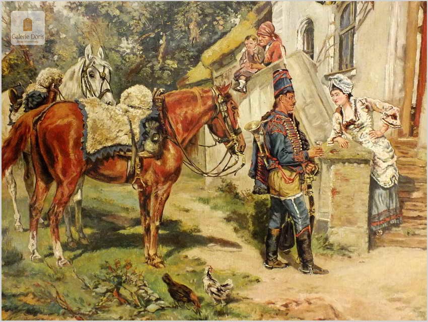 Malarstwo Rodzajowe! Huzar i Dziewczyna - Angelo Jank (1868-1940)