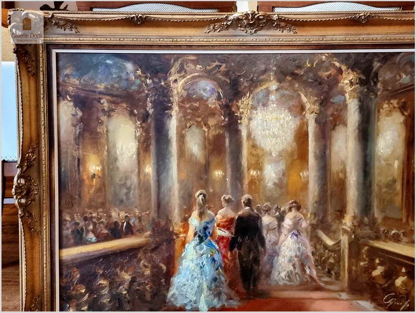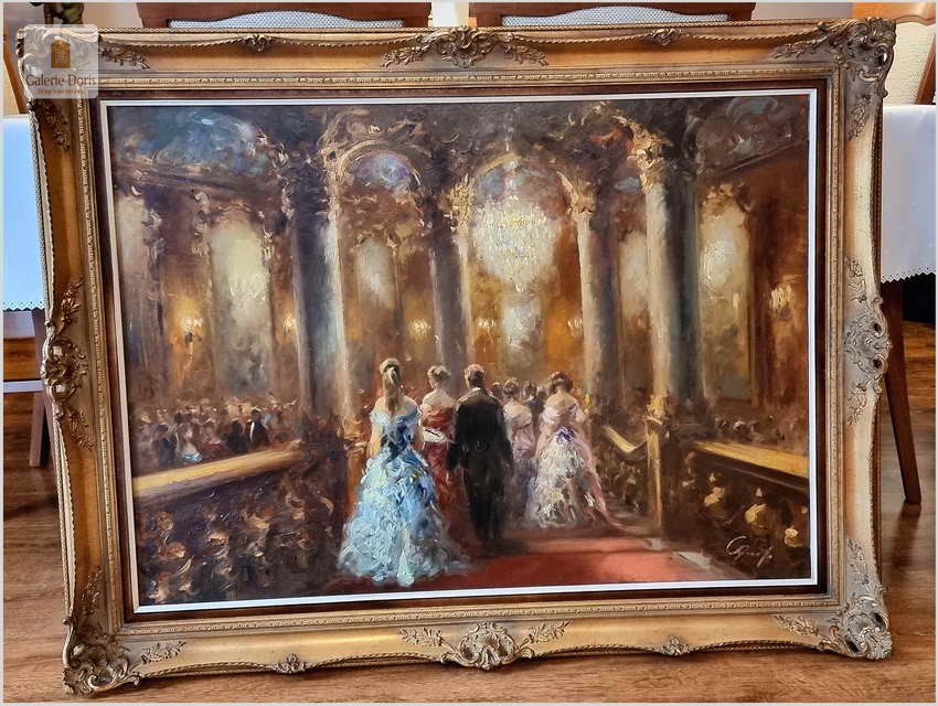 Malarstwo do salonu! Scena balu w zabytkowym wnętrzu - Constantin GRAF (Berlin *1930)