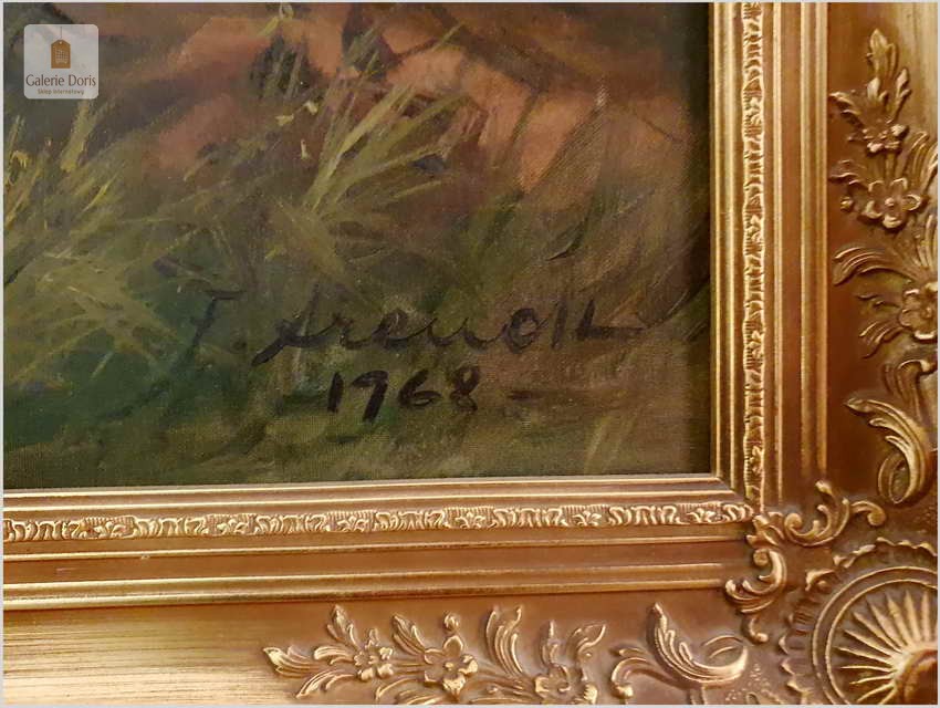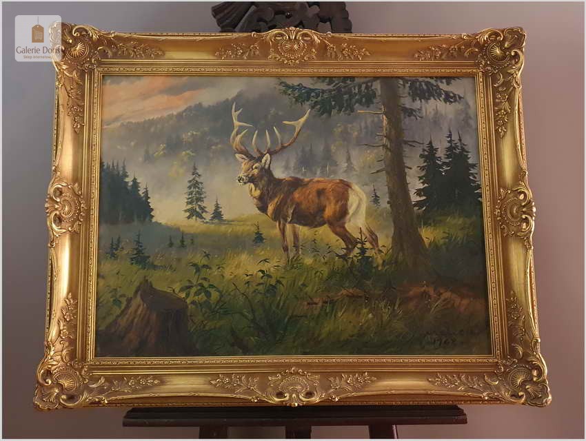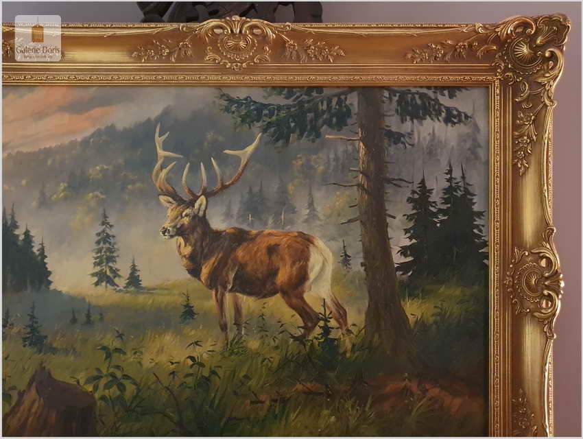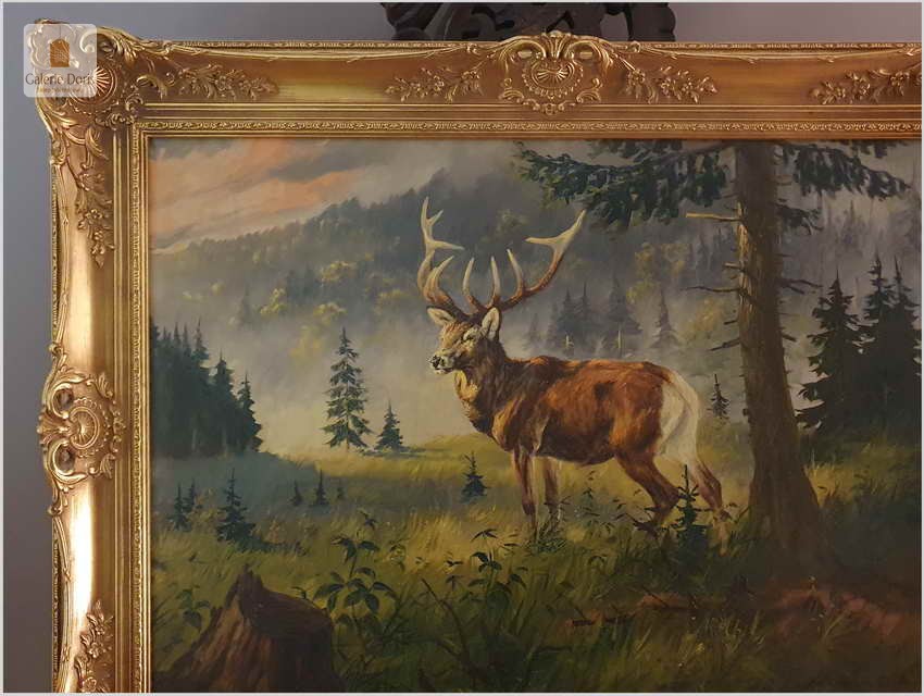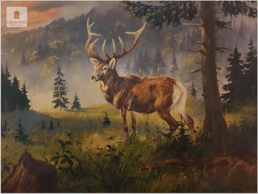Malarstwo myśliwskie! Jeleń na leśnej polanie - Fred ARENDT (*1928)