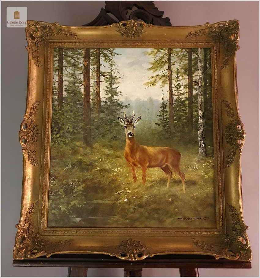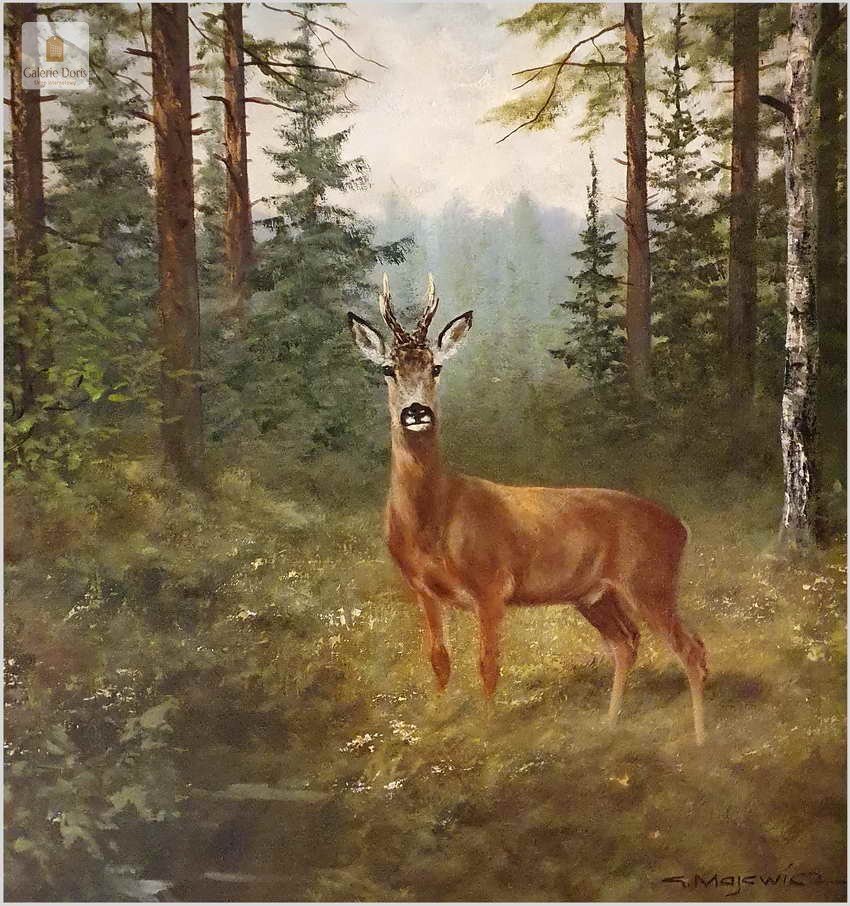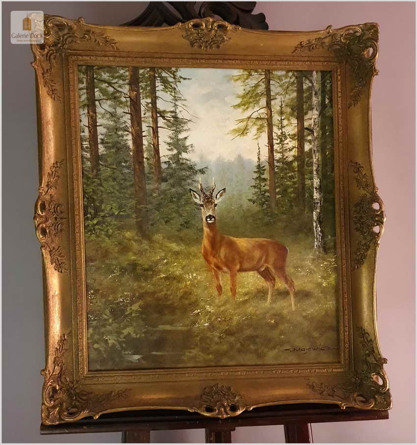 Malarstwo myśliwskie! Kozioł sarny - oryg. Georg Majewicz (1897-1965)
