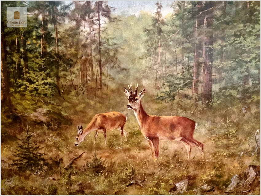 Malarstwo myśliwskie! Sarna i Kozioł Sarny - oryg. Georg Majewicz (1897-1965)