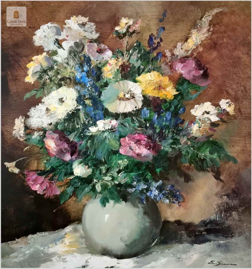 Malarstwo szpachlowe! Kwiaty w wazonie - oryg. Erich Griese *1912
